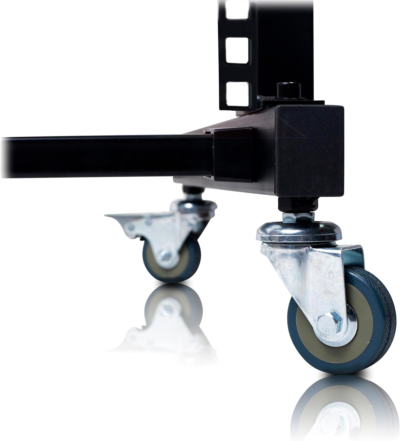 - KEEP YOUR AUDIO GEAR AND STUDIO RECORDING EQUIPMENT WITHIN ARM’S LENGTH. : Store all your outboard gear, amplifiers, or signal processors and keep them within easy reach of your auto locator or studio mixer with the help of this heavy-duty, all-steel, 19 spaces rolling rack mount stand. Its highly versatile design gives you plenty of options to help you arrange your DJ or stage gear according to your needs. Equipped with 4 durable, smooth-gliding caster wheels (two are lockable).