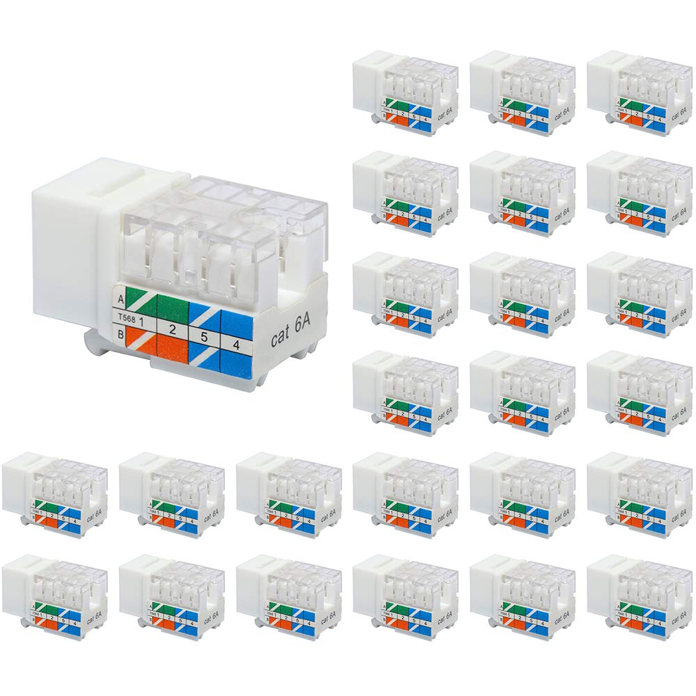 - Package Content: 25 x Cat6A 90-degree keystone jacks. With UL Listed (E521847, C265-6A/UL) and worry-free 18-month warranty, just use it without concern.