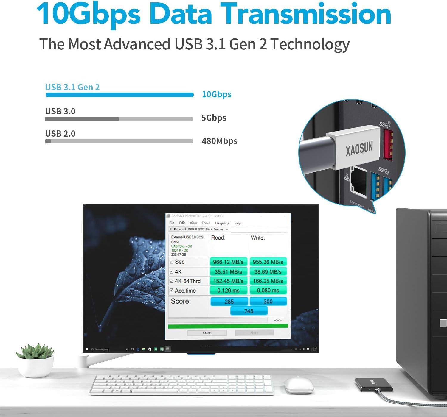 [10Gbps] USB C Female to USB Male Adapter (2-Pack), 3.1 USB A to USB C Adapter, XAOSUN One-Sided SuperSpeed Data Sync & 100W Fast Charging - Compatible with Laptop, PC, Charger, Power Bank, Quest Link