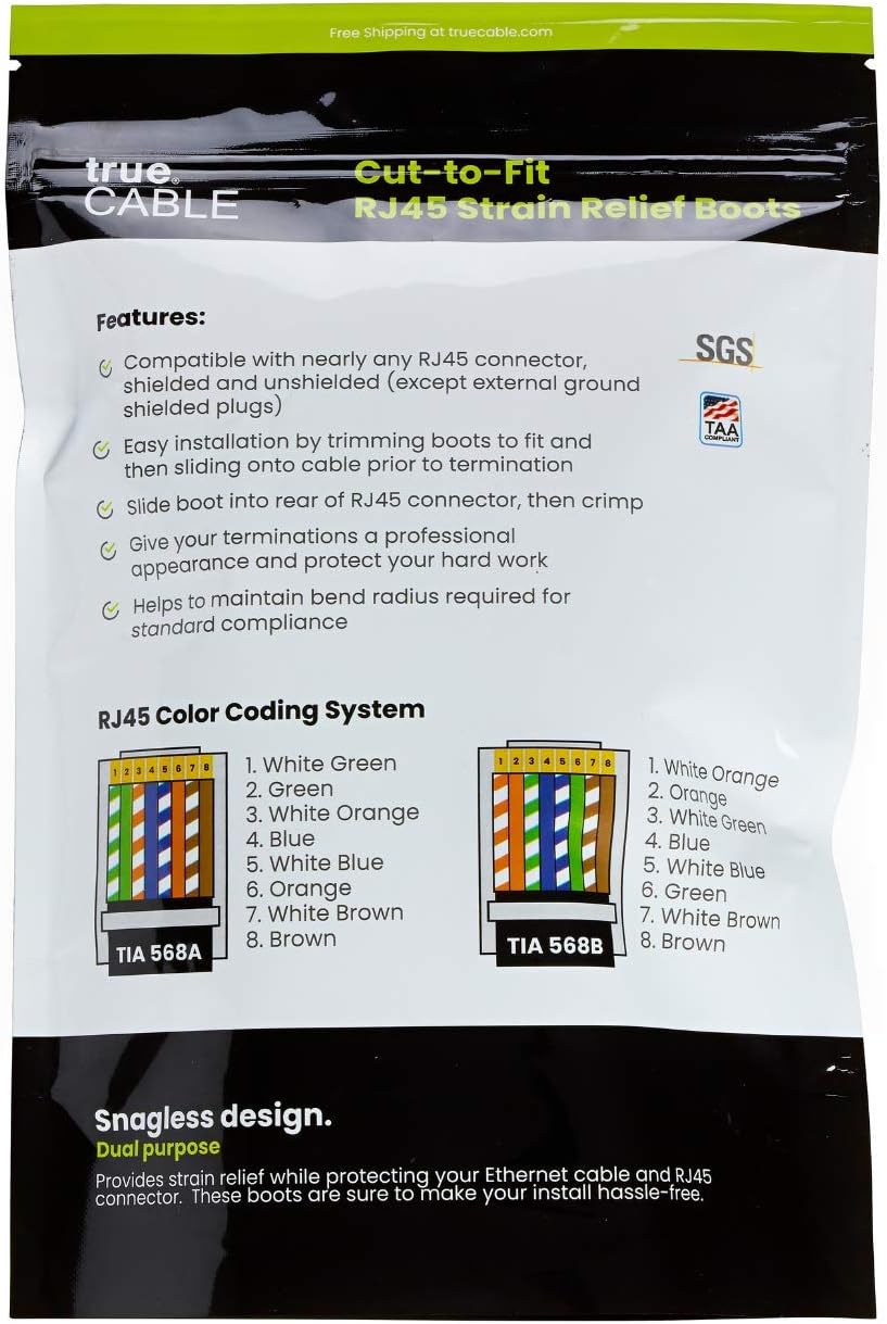 - EASY TO USE. Trim boot to fit, slide onto your cable, attach connector, slide boot into the rear of RJ45 plug, crimp, and done.
