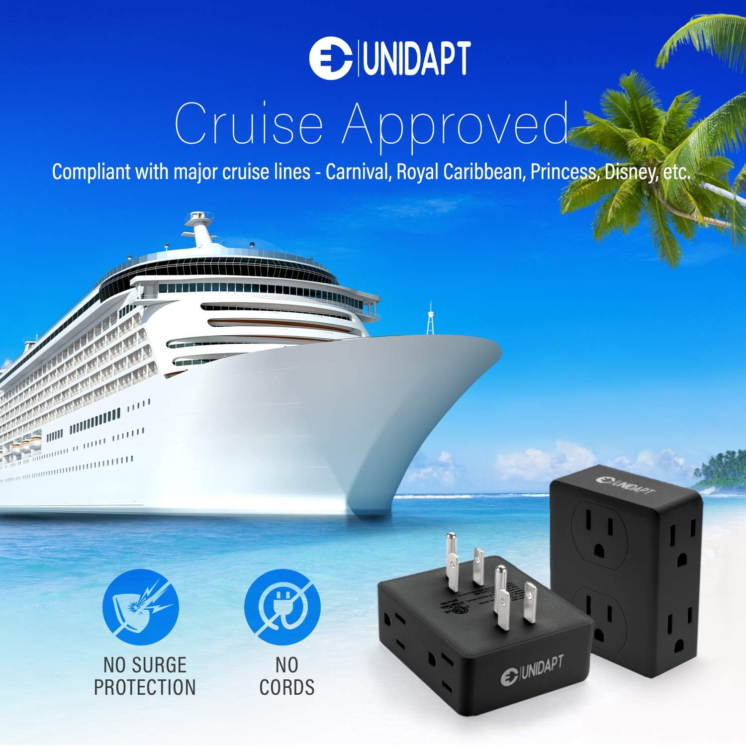 - Special Feature : Cruise Ship Approved, Grounded outlets, Multi plug, outlet extender, outlet splitter