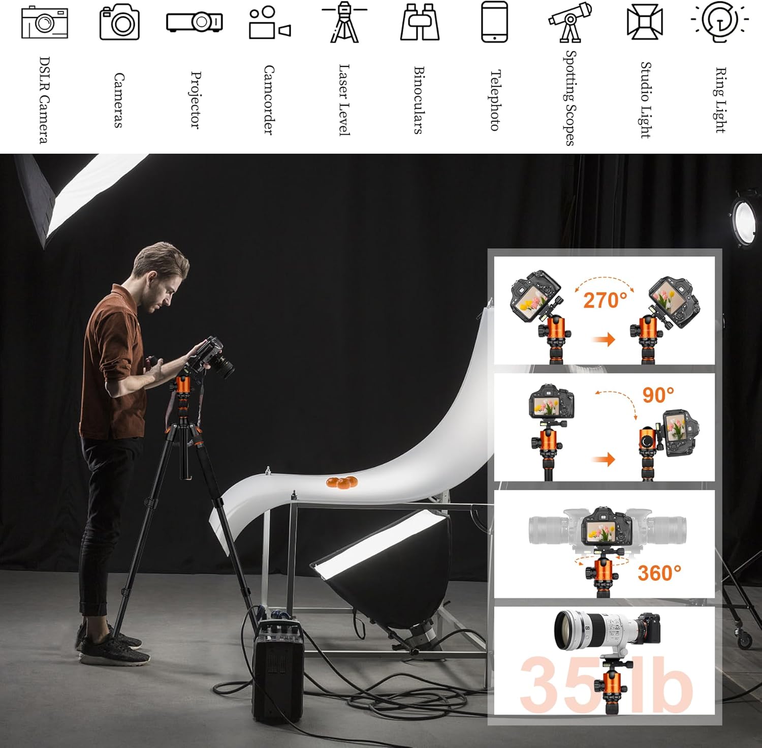 - Compatible Devices : Camera, tripod for binoculars, tripod for laser level, tripod for spotting scopes, tripod for telescopes Camera, tripod for binoculars, tripod for laser level, tripod for spotting scopes, tripod for telescopes