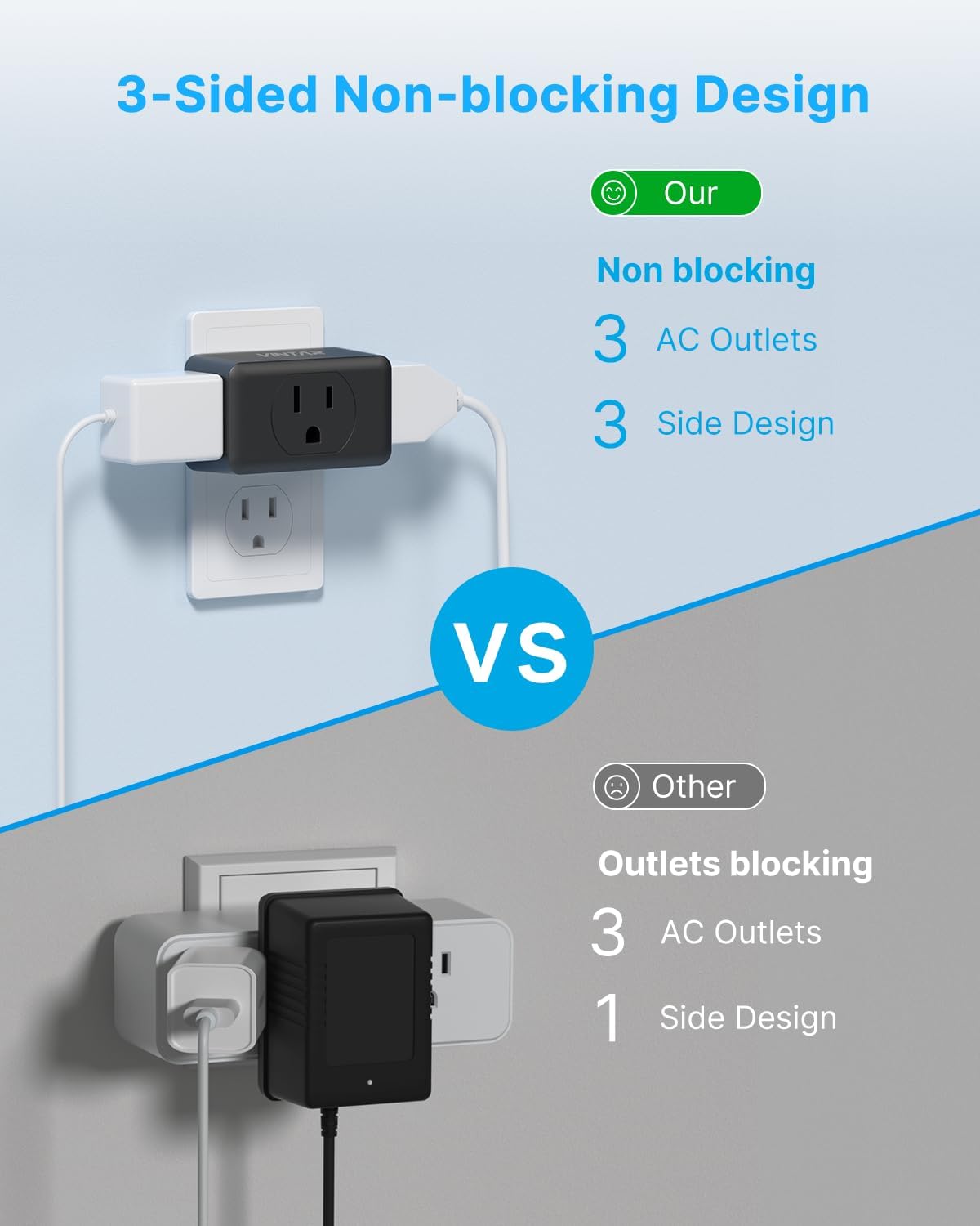 VINTAR 3 Pack Multi Plug Outlet Extender, Adapter, Splitter, Black, Type A, 125V, 15A, ETL Certified