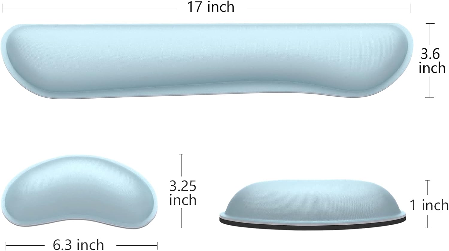 - Enlarge Thicken Size:2-in-1 wrist rest set to provide double delighted experiences and save your time in purchase them separately. 17*3.6*1 inch keyboard wrist rest pad and 6.3*3.25*1 inch mouse wrist pad offers more support to your wrist