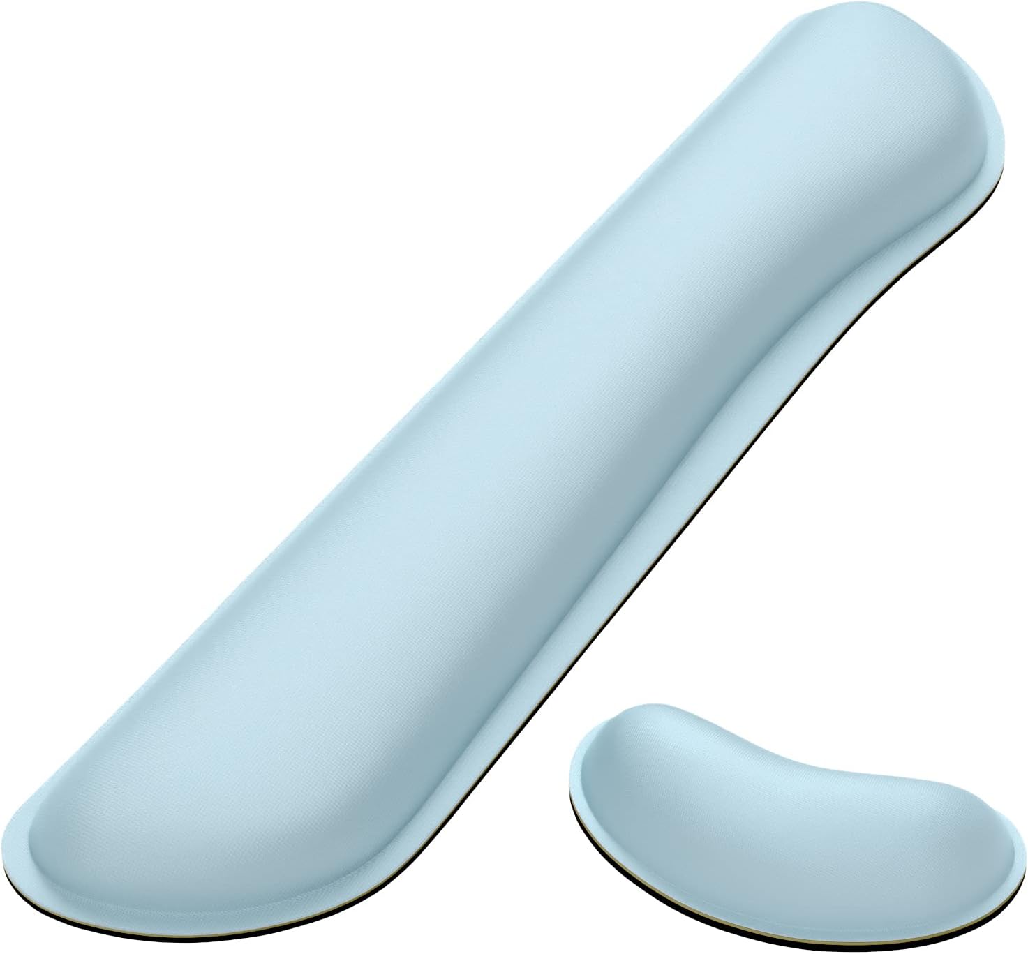 Dapesuom Enlarge Keyboard Wrist Rest, Memory Foam Wrist Cushion for Desk Mats Support, Cute Typing Pain Relief Keyboard Mouse Pad Rests Set with Non-Slip Base for Gaming Laptop Office, Sky Blue
