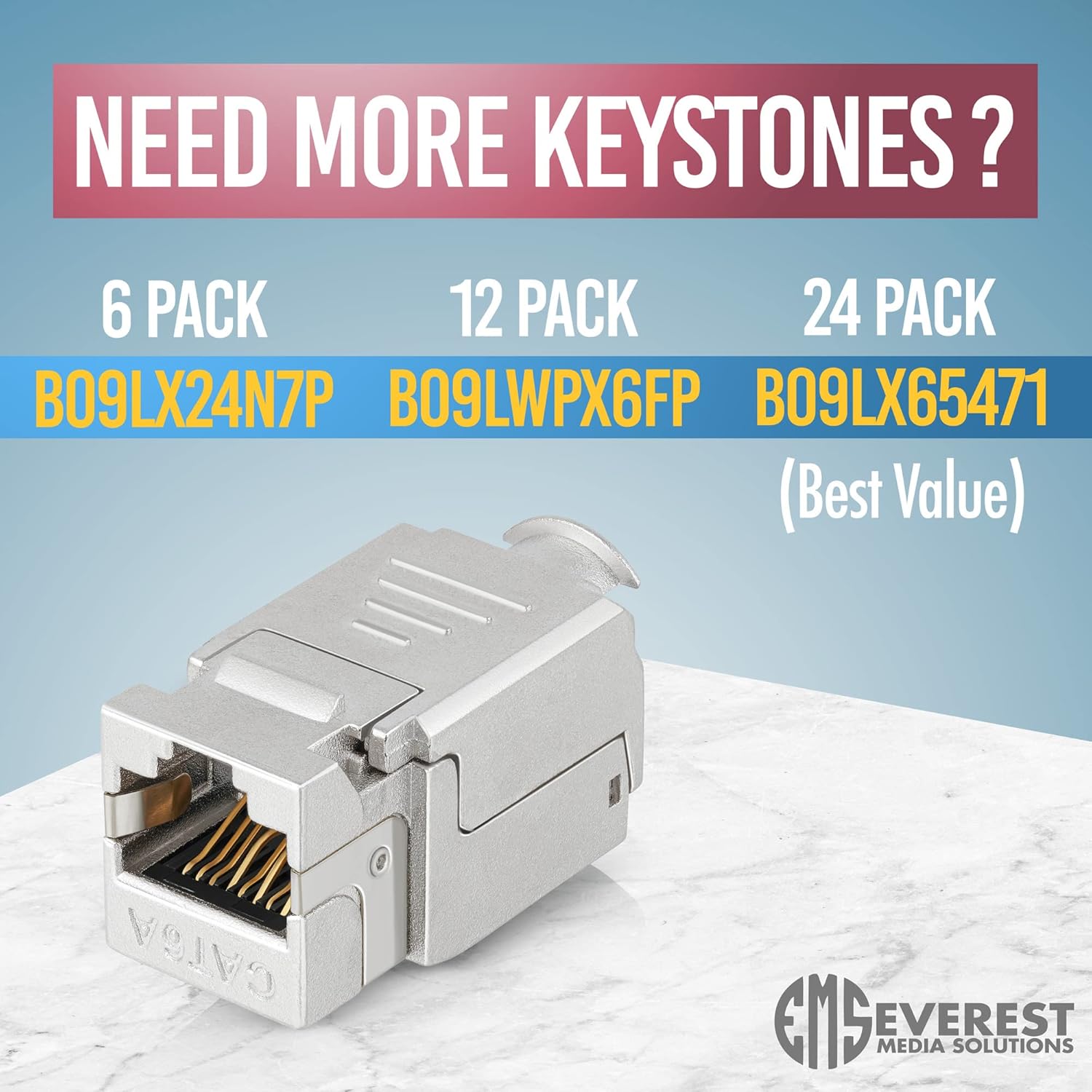 - Everest Media Solutions easySHIELD (CAT6A Kit) - Speed Termination Tool, with 12 Slim Profile, 90-Degree RJ45 Shielded Keystone Jacks - F/STP Punch Down Crimper - Tested for CAT5e, CAT6, CAT6A, CAT7