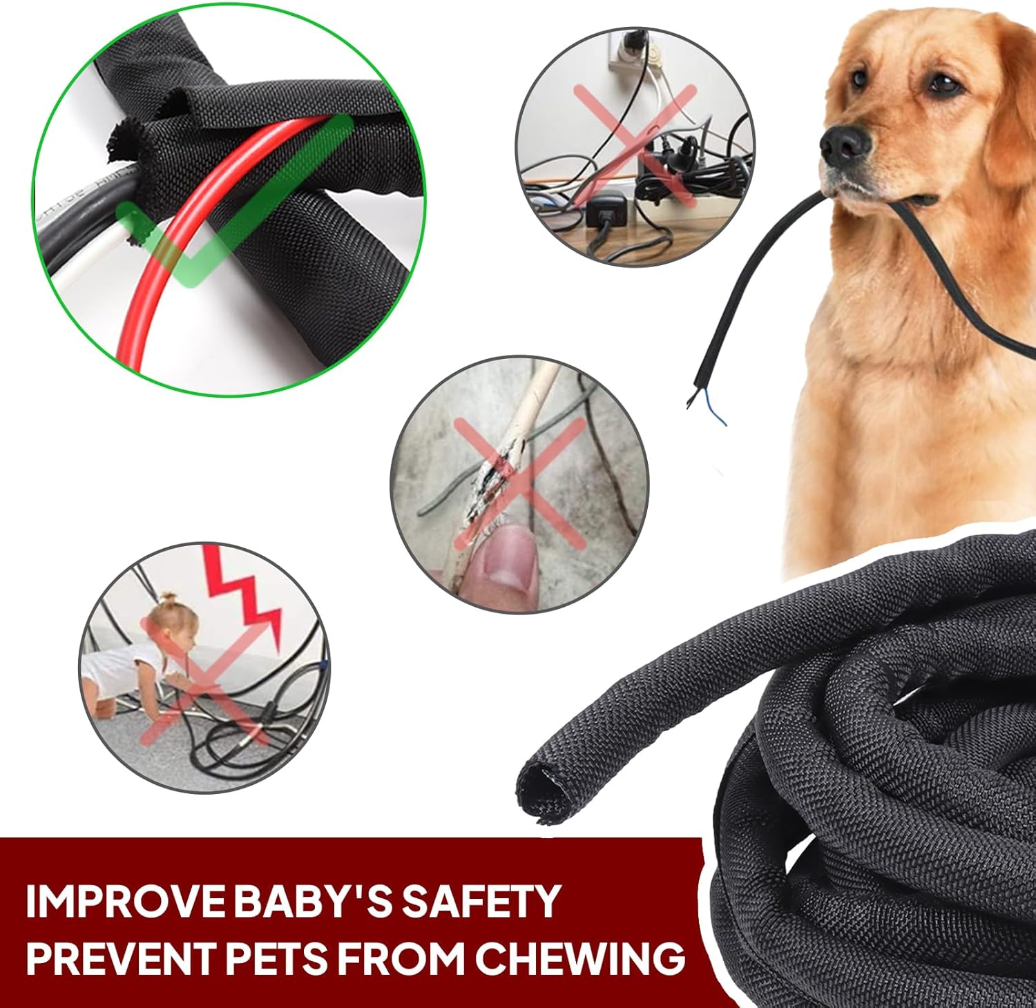 - Braided Quality: Cable sleeve refined by PET polyethylene material and high-precision weaving technology. wrap the harness, will not leak, stronger wear resistance and bite resistance, protect the wires from being chewed by pets