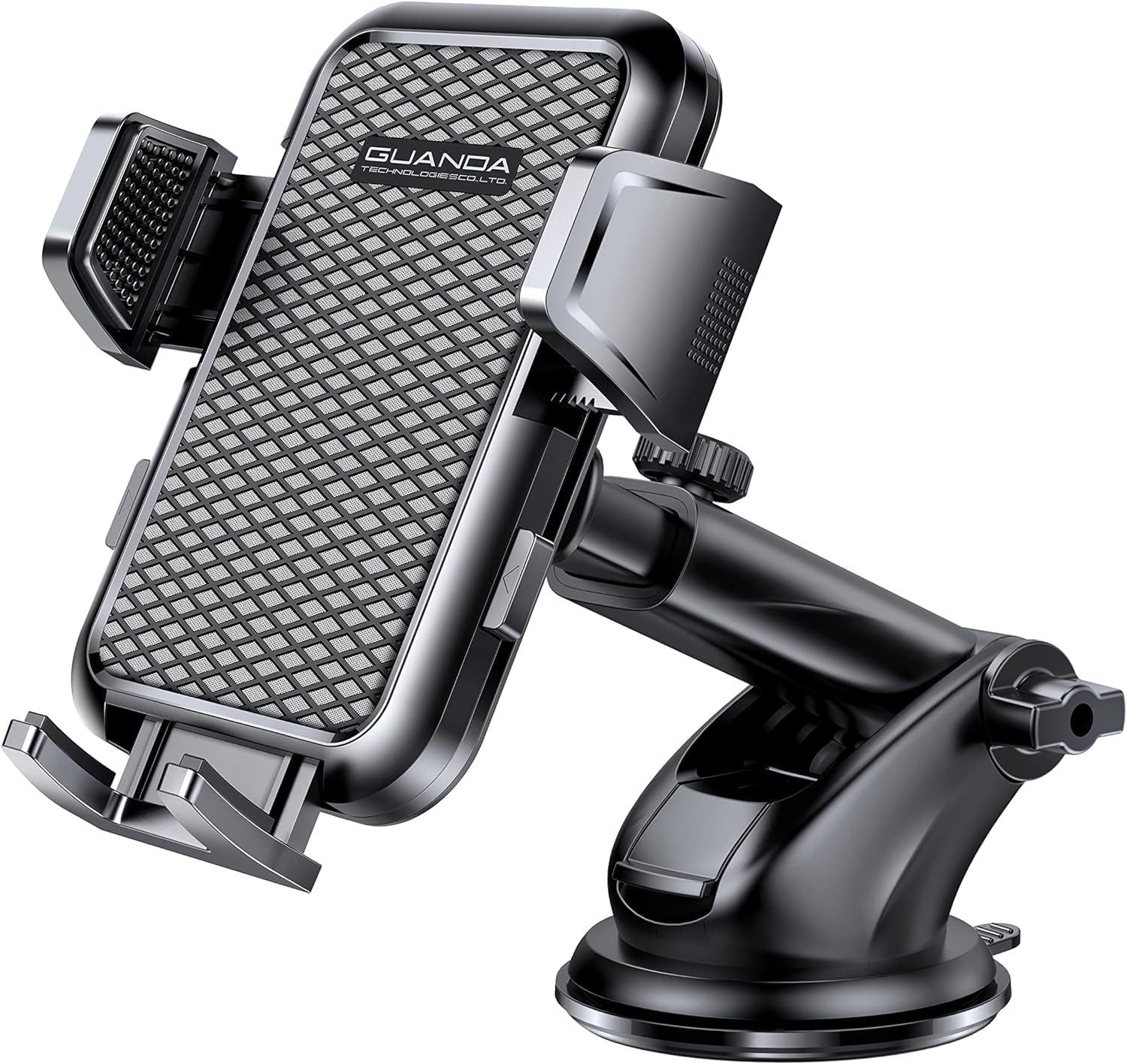 - â ăPOWERFUL STABILITYăThe upgraded phone mount clamps with anti-slip pads can hug your mobile phone tightly. Military-grade shockproof panel provides full protection for your smartphones, increase friction, ensures absolute stability. Also, with extra strong lock mechanism of the suction cup and super sticky gel pad, Guanda hands free phone mount for car can securely and stable stick on the dashboard/windshield/desk. Apply to cars/trucks/SUV/taxis. Good assistant for Uber, Lyft drivers.