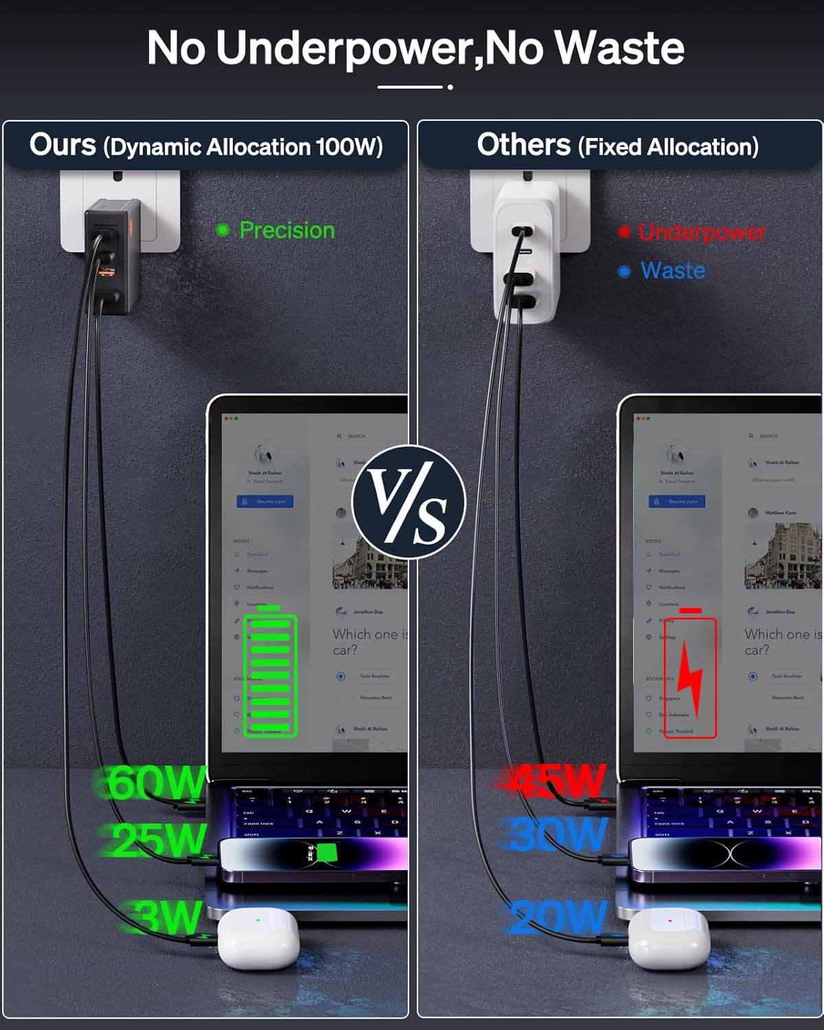 - ๐๐ข๐ ๐ก-๐๐ฉ๐๐๐ ๐๐ก๐๐ซ๐ ๐ข๐ง๐ ๐ : Up to 100W charging power - Quickly relieves your low-battery anxiety.