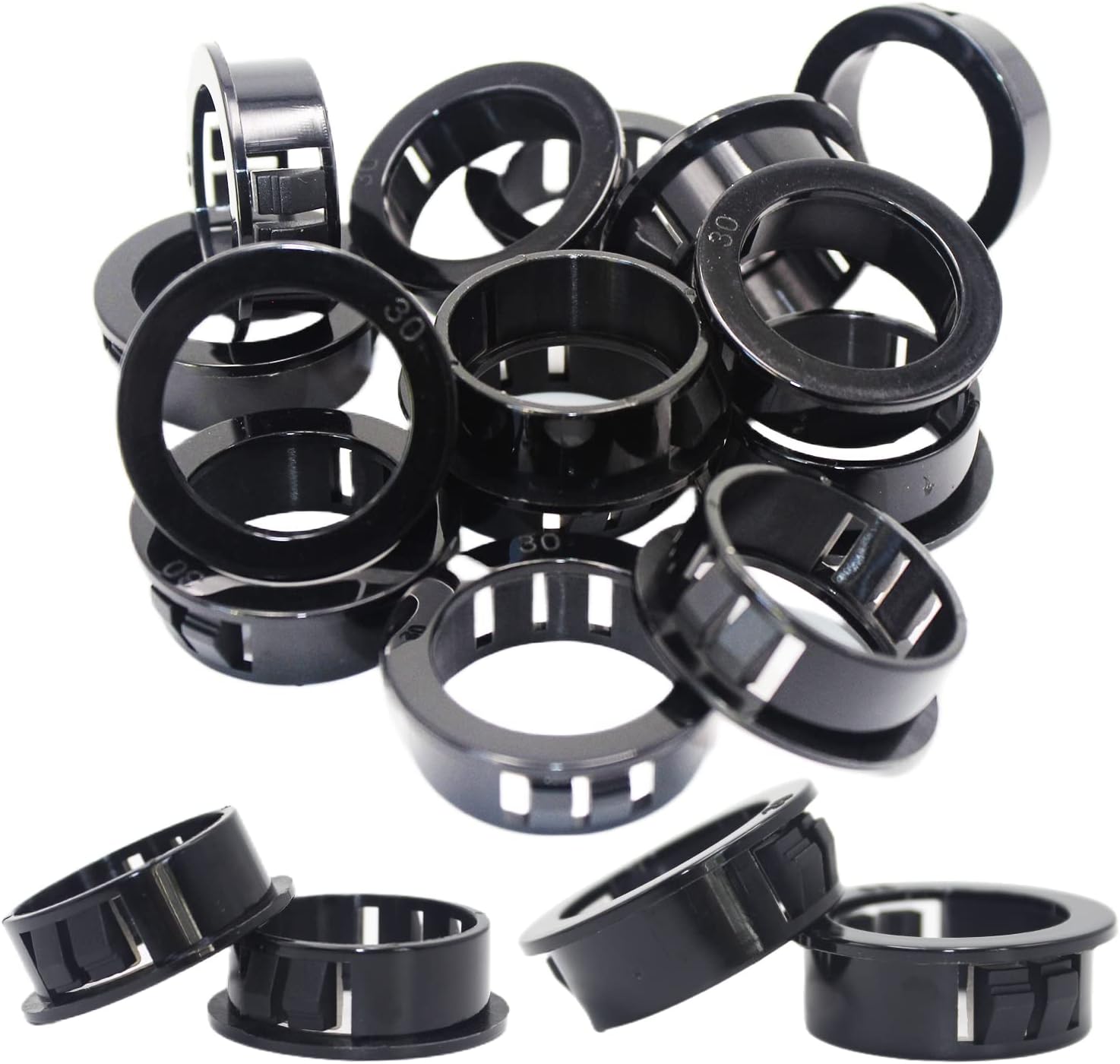 - PACKAGE&SIZE: You will got 15pcs of black snap-in knockout bushing for this package with Mounting Dia: 1 3/16"; Fits hole diameter: 1.17~1.2in(29.8~30.5mm); Inner Dia: 0.94in(23.8mm); Outer Dia: 1.32in(33.58mm); Height: 0.45in(11.36mm)