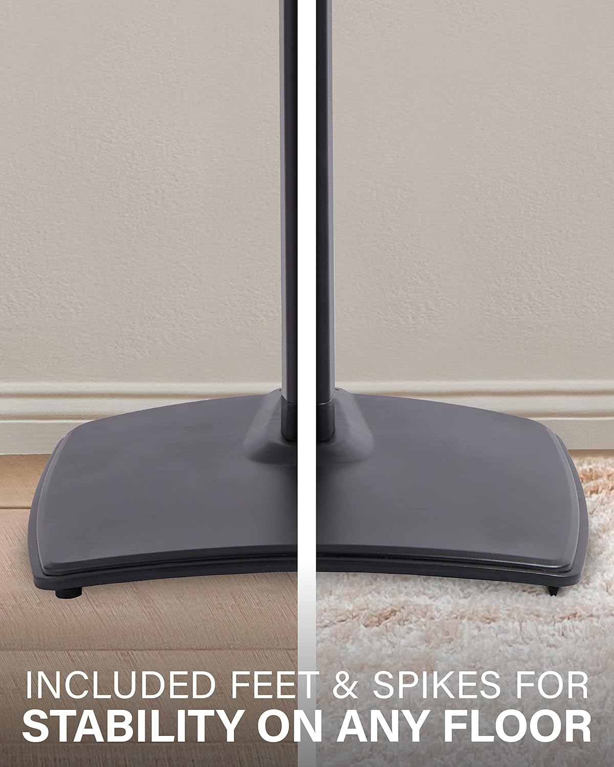- Easy 3 Step installation in less than 15 min, no drilling required, compatible with all floors. Everything you need to install this SANUS Speaker Stands kit is in the package including carpet spikes, rubber pads and necessary hardware. Rest assured knowing every SANUS Product is safety tested & quality built.