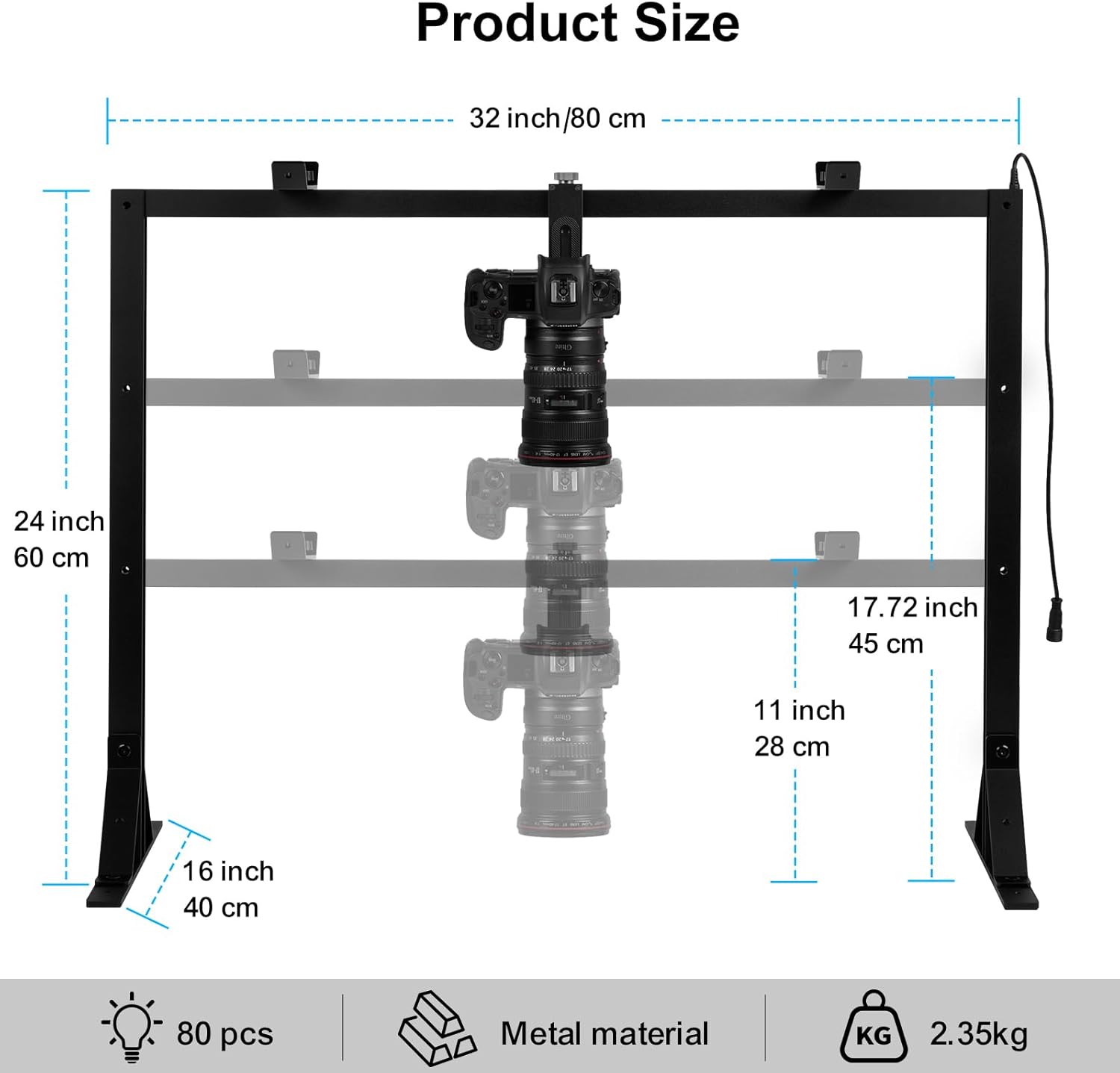 - Built-in 5600K continuous LED light delivers soft, even daylight-white illumination—no more harsh shadows or uneven lighting in product photos or live streams. It’s adjustable to match different lighting needs, ensuring your shots stay clear, bright, and true to color, whether you’re shooting small gadgets, cosmetics, or food.