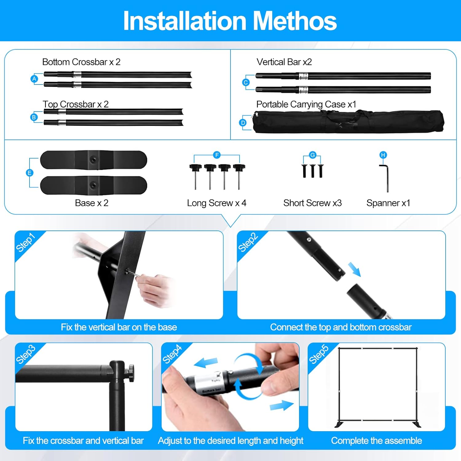 - 【Upgraded Professional Banner Stand】The backdrop banner stand is made of aluminum alloy, locking System Upgrade, the screw fastening connection of the crossbar adopts a widened design to prevent the middle of the cross bar from sagging. More stable than ordinary support bar.