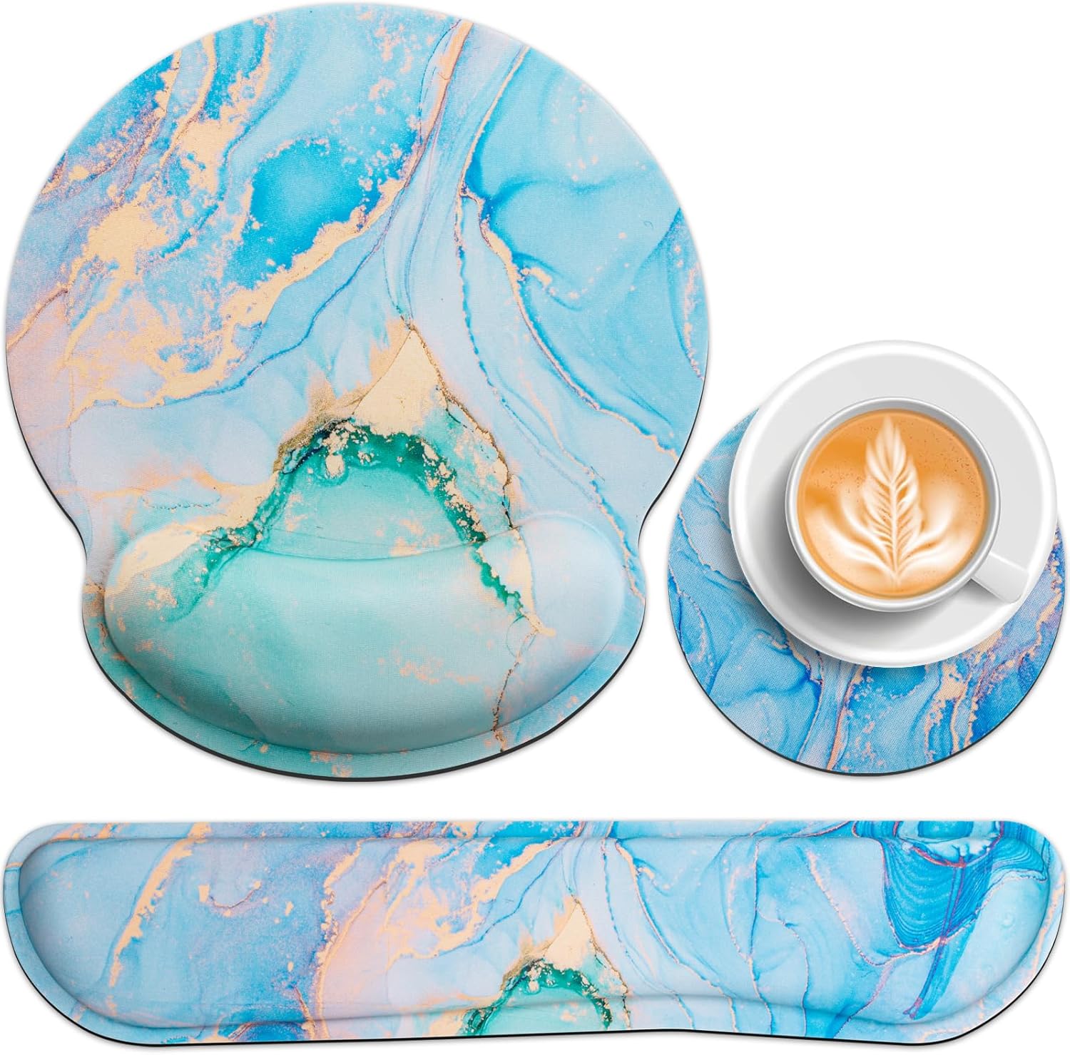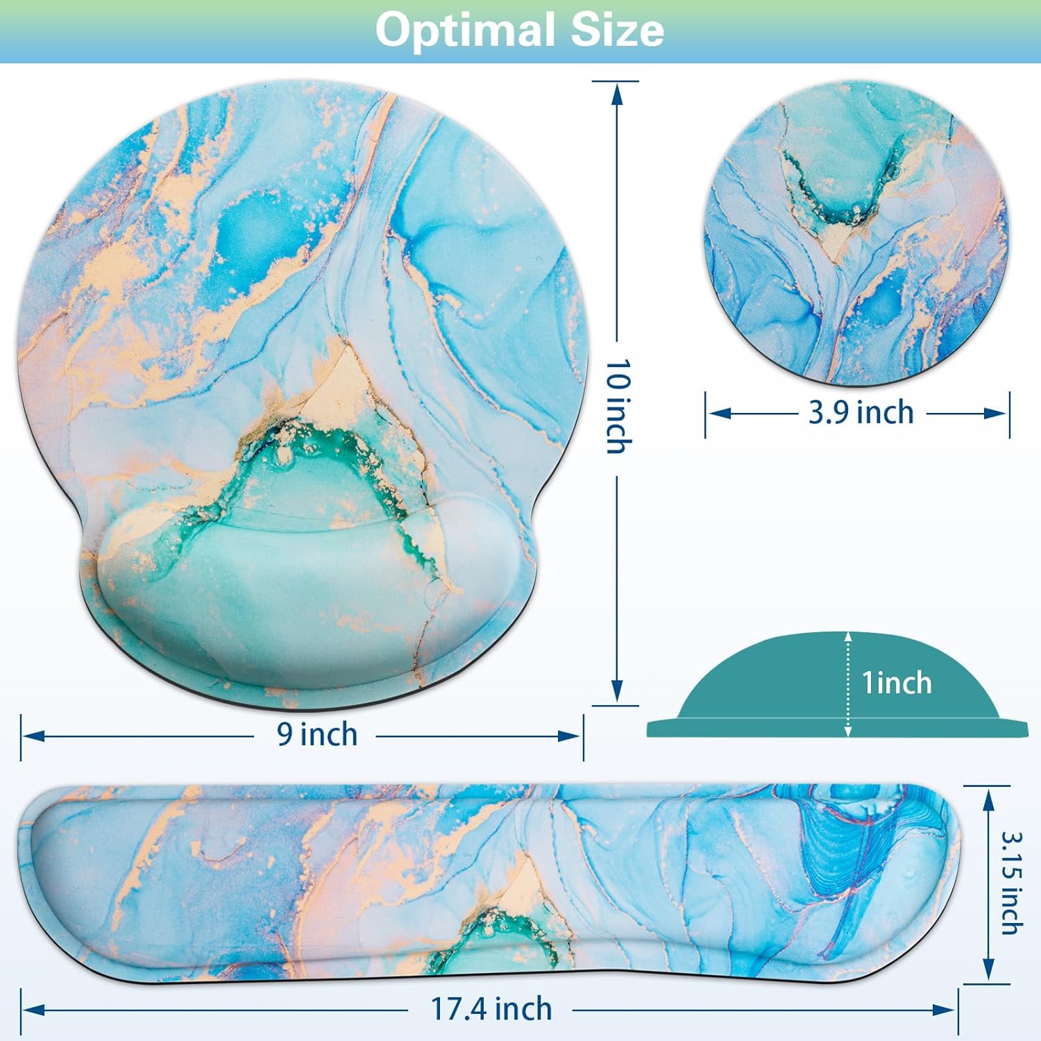 - 【3-IN-1 Keyboard Wrist Rest】-The size of the mouse pad with wrist guard is 10x9 in, the size of the keyboard wrist rest cute guard is 17.2x3.3 in,and the diameter of the cup pad is 3.9 in.The Mousepad with wrist support can be used with notebook computers,desktop computers and game consoles,and is suitable for office,home,dormitory or other occasions.