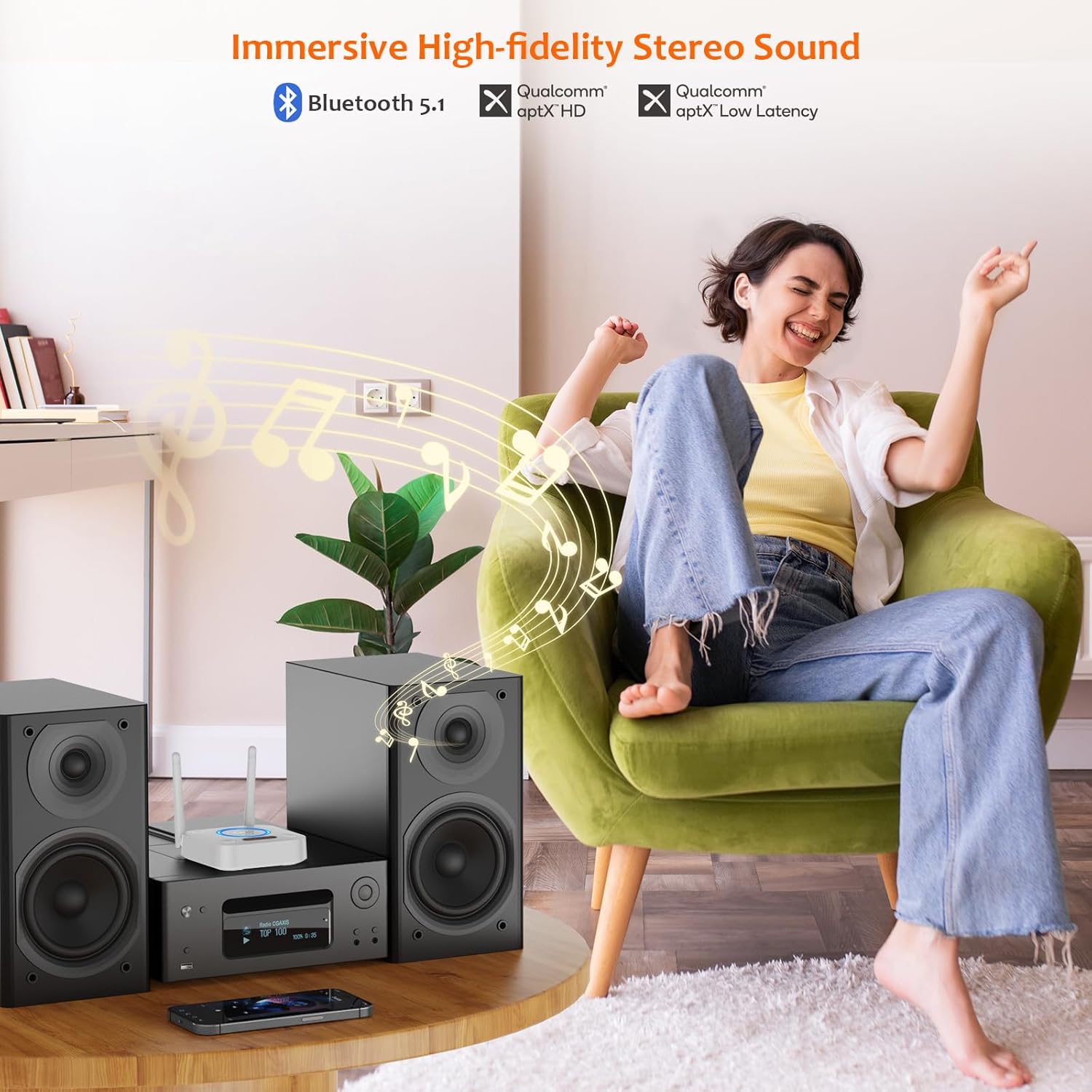 - Compatible Devices : Hi-Fi Home Stereo/AV Receiver/Amplifier, Smartphone/Tablet/Laptop