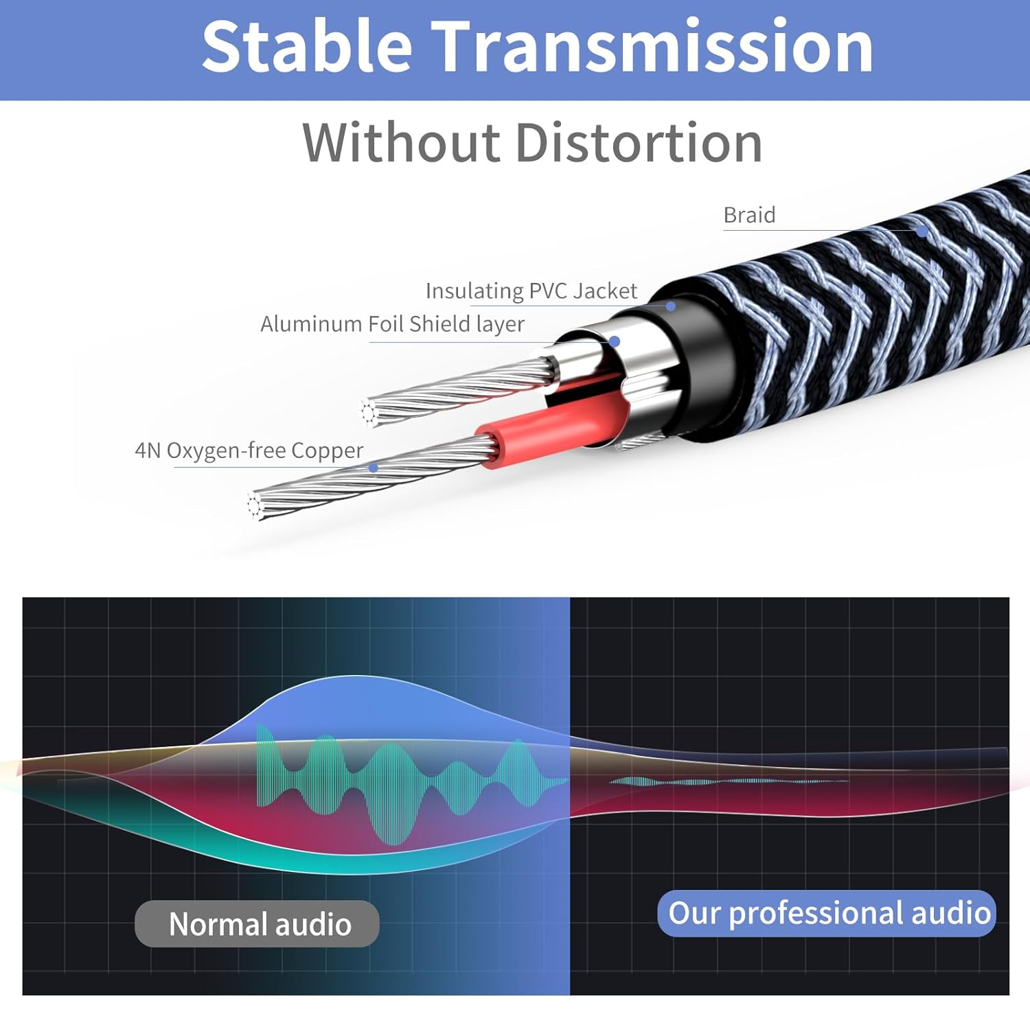 - ā« GOSYSONG 1/4" stereo cable length 3ft, line diameter 4.8mm, use soft PVC protection and additional braided as jacket, tangle-free and service life is more longer.
