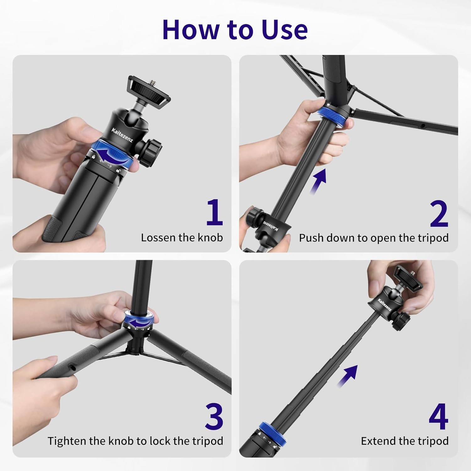- ▶【Comes with GoPro Adapter】The 2-in-1 tripod can be used not only as a camera tripod but also as a handheld grip or selfie stick. Kaitezenz Gopro tripod includes a Gopro adapter for all Gopro, dji action, and other action cameras. The universal 1/4" screw on the top of the camera tripod fits all insta360 cameras and Sony Canon Nikon compact cameras.