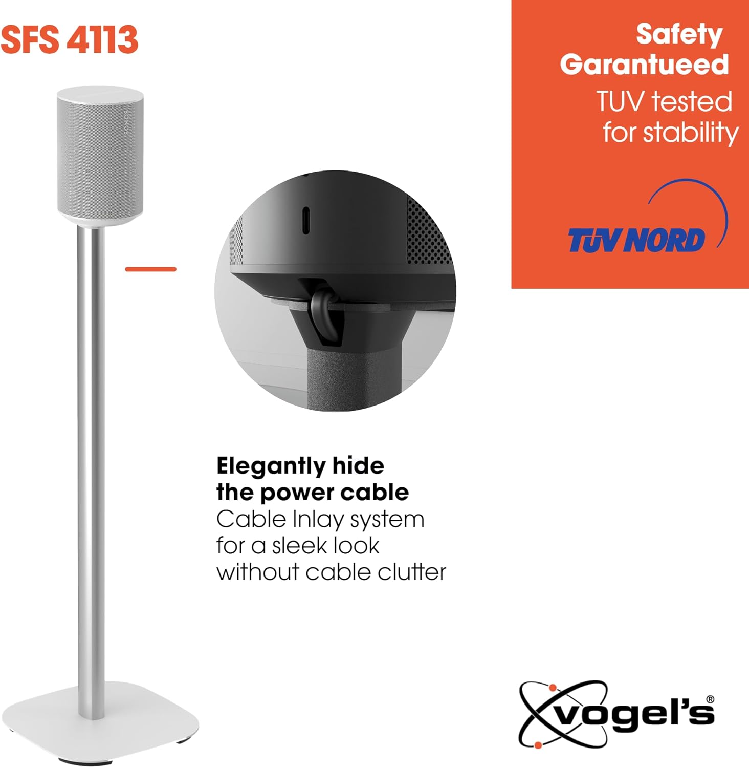 Vogel's SFS 4113 Speaker Floor Stand for Sonos ERA 100, Cable Inlay System, Height: 32,3 inch (82 cm), Exceptionally Stable, White, 1 Floor Stand