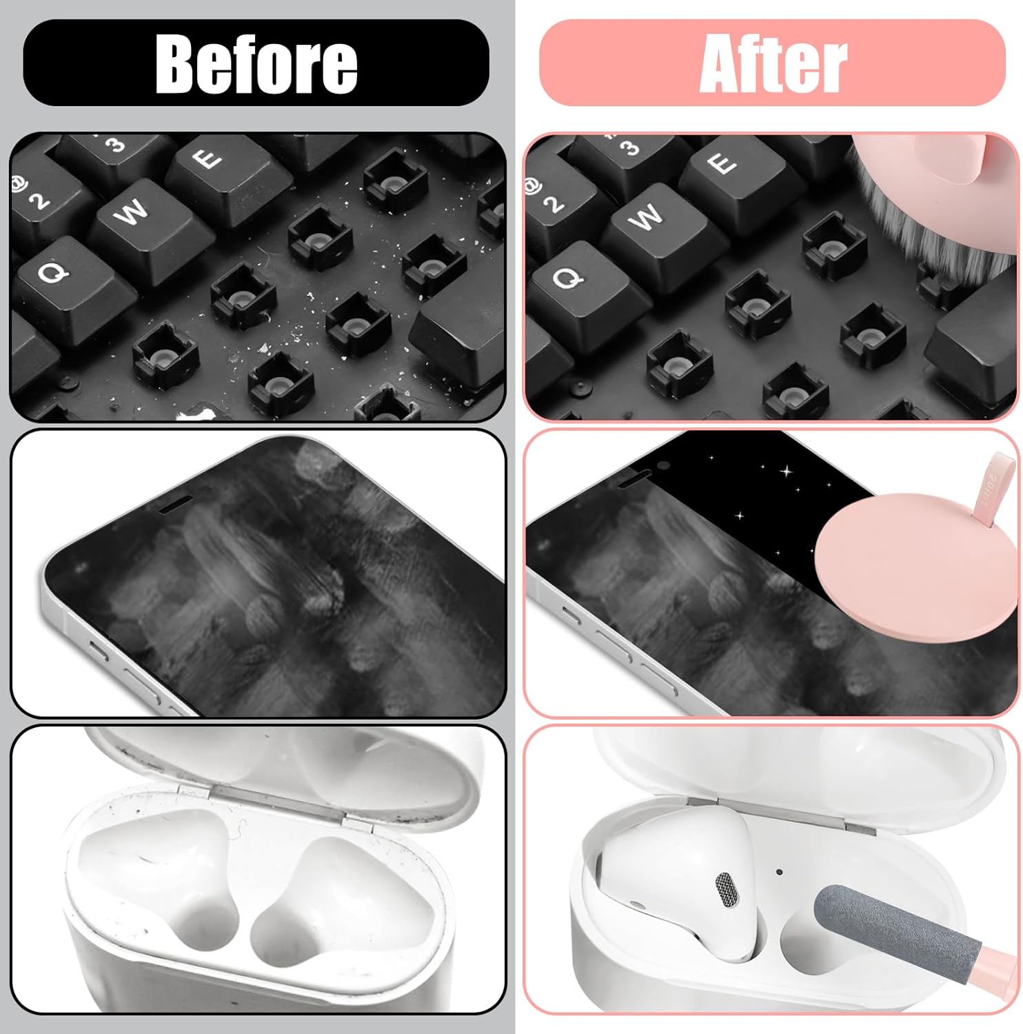 walrfid Laptop Phone Screen Cleaner Kit, Computer Keyboard Brush Cleaning Spray for iPhone AirPods MacBook iPad, 20-in-1 Electronic Device Clean Tool for Camera Earbud Car Screens (Pink)
