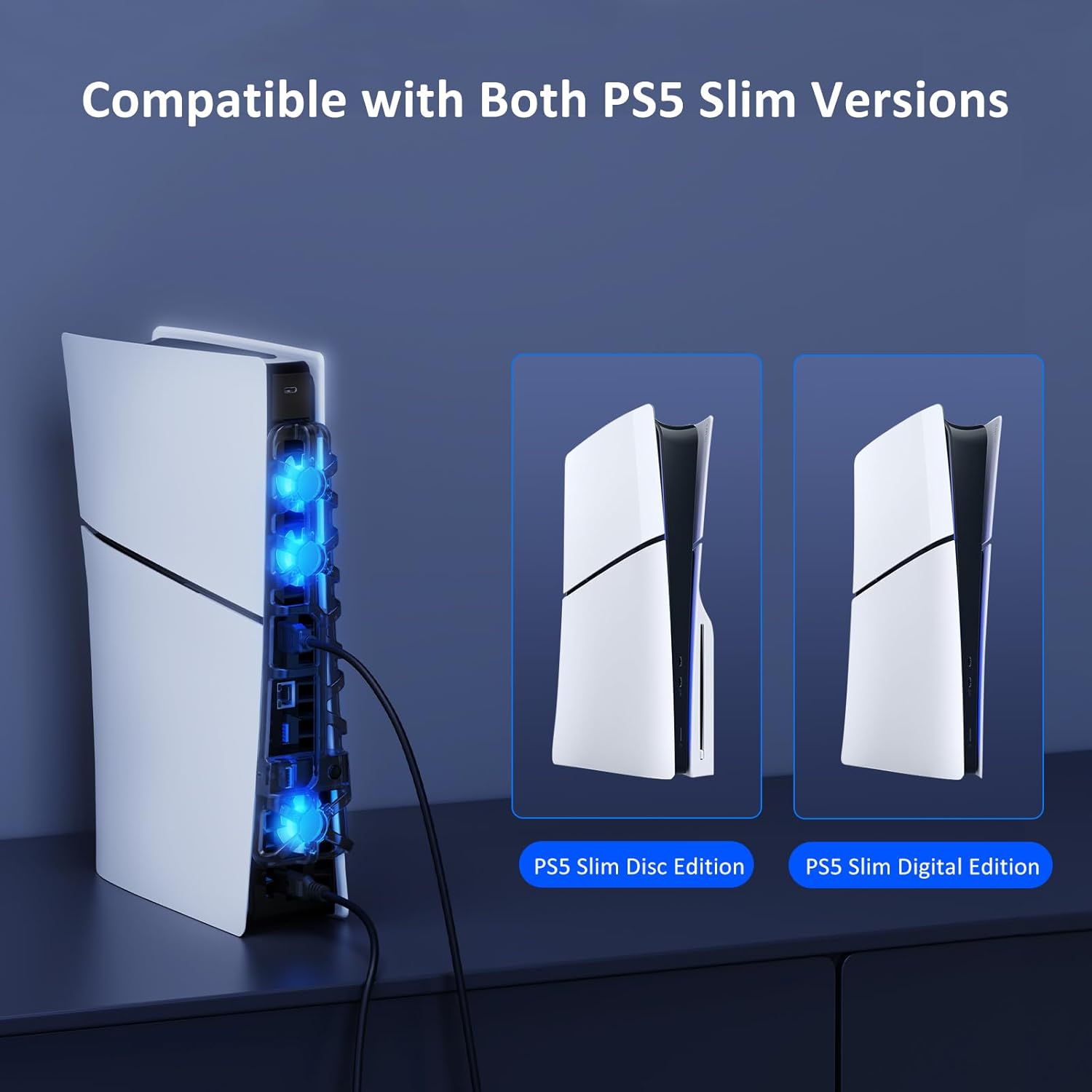 - 【Wide Compatibility】Compatible with both PlayStation 5 Slim Disc and Digital Editions, supporting both vertical and horizontal orientations.