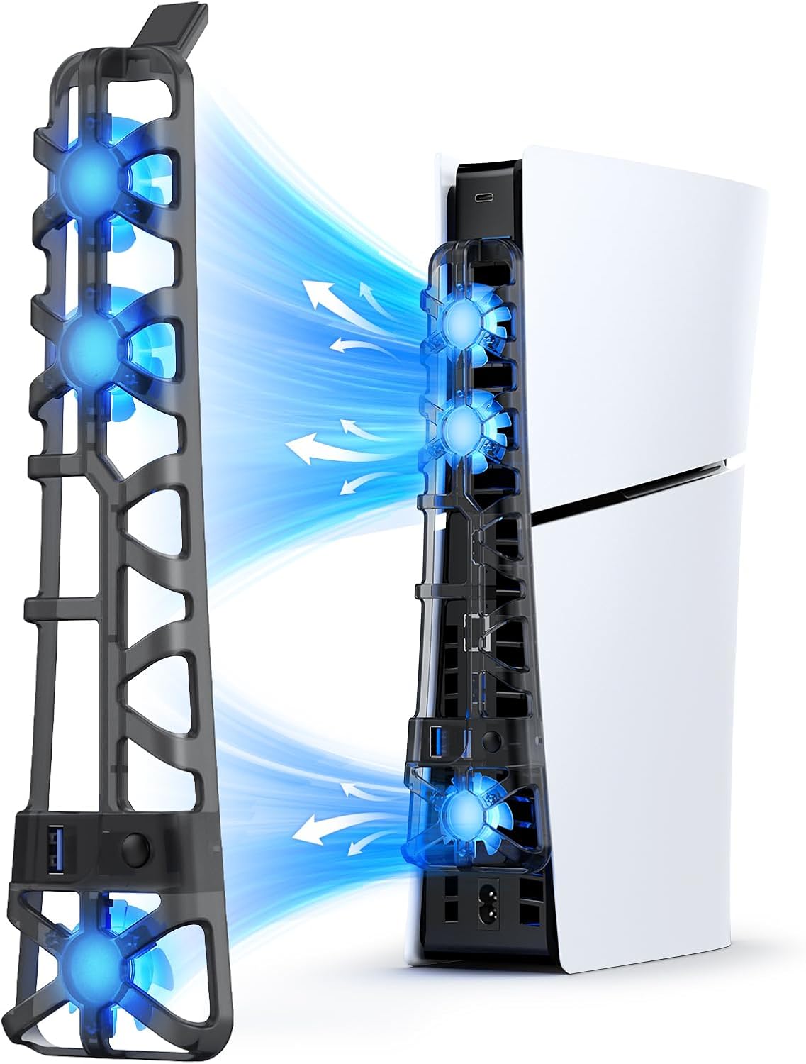 - 【Efficient Cooling System】This attachment includes three fans to rapidly dissipate excess heat from the PlayStation 5 Slim console, enhancing the console's longevity and performance. The fans automatically turn off with the console, minimizing energy wastage when you're not playing.