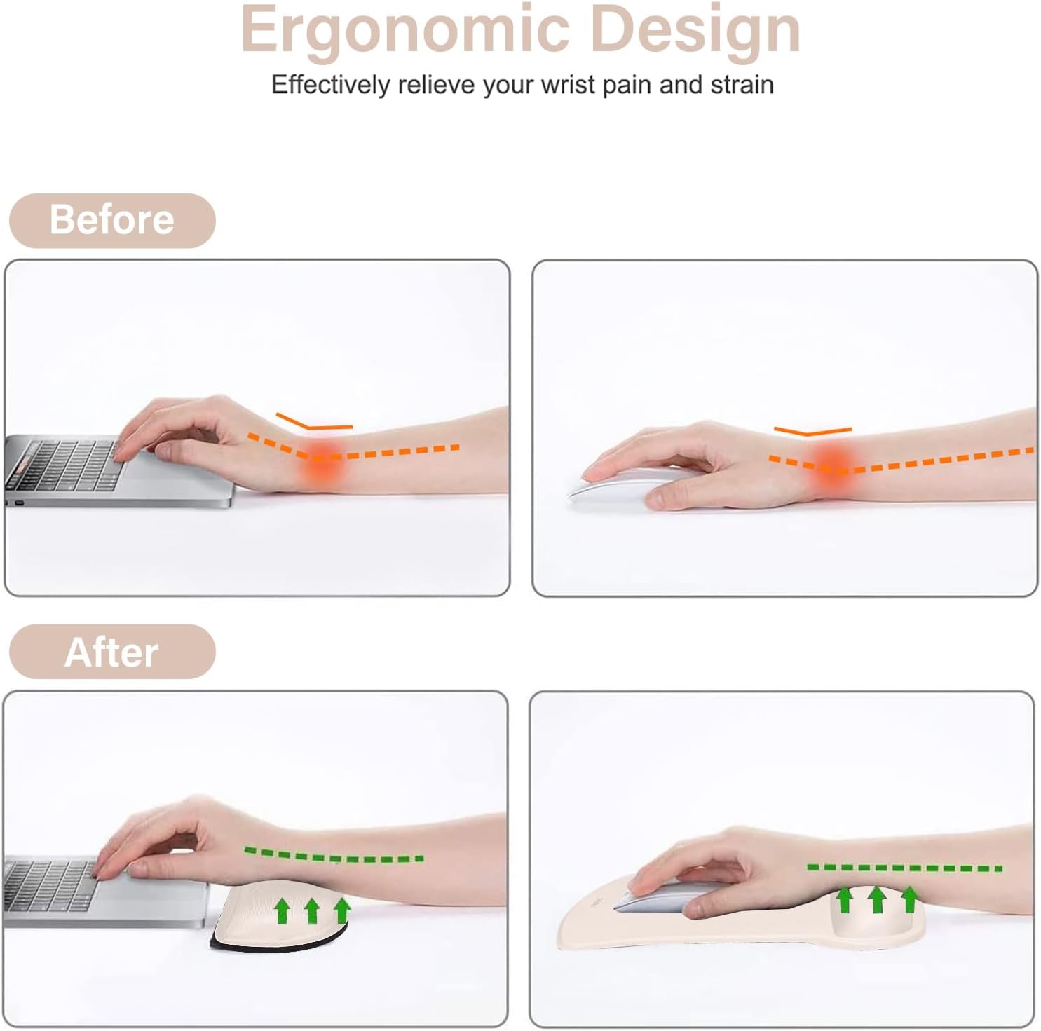 - Ergonomically designed with breathable/durable neoprene cloth and raised memory foam. Efficient for easy typing & pain relief. Offers soft support to relieve pressure and pain of your wrist, keep your wrist in a natural and comfortable state.