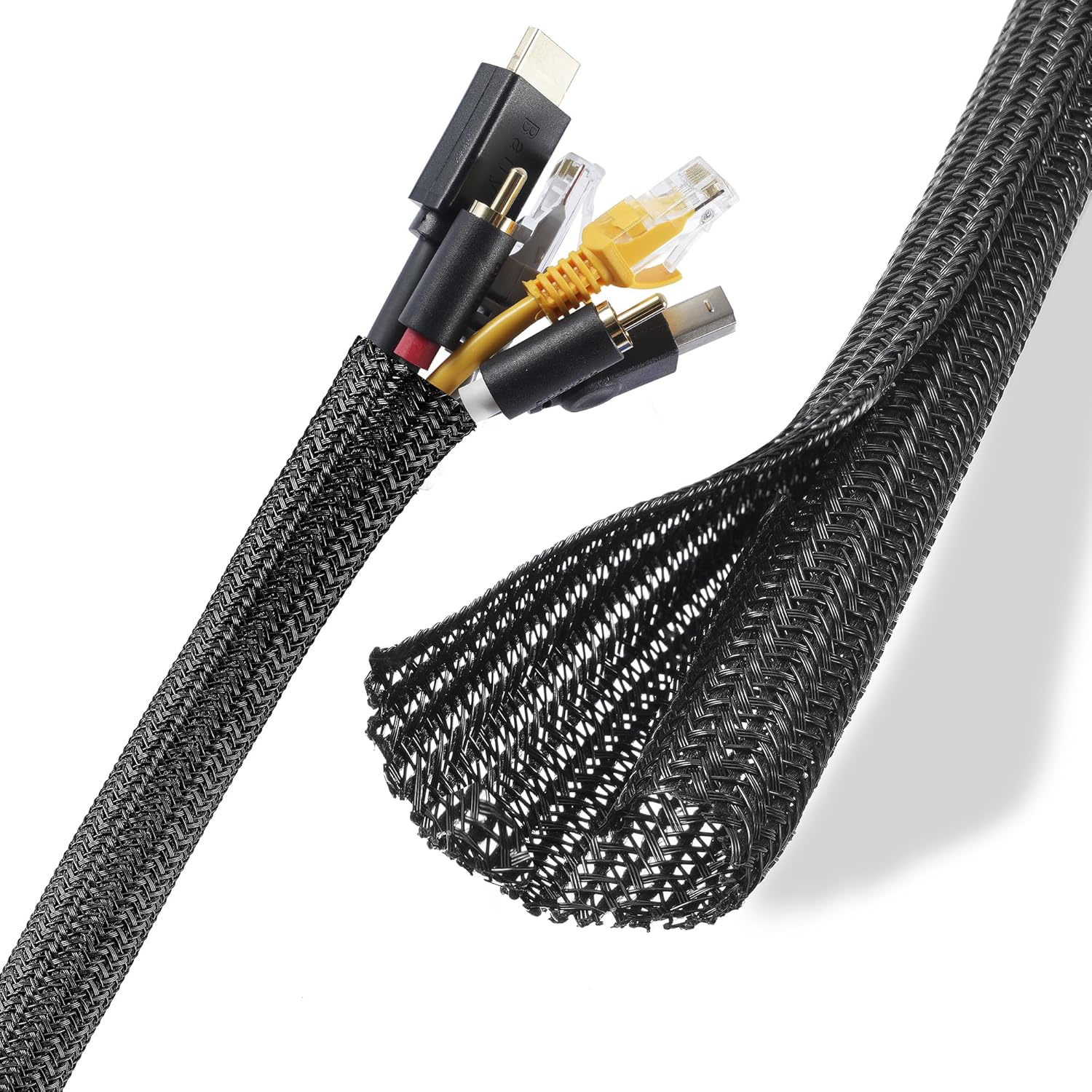 Cable Management Sleeves 1.5in - 2 Pack 4.1ft Split Braided Cable Sleeve Black, Wire Organizers for Cords, Hard PE Cord Protectors from Pets, Flexible Cord Wrap Wire Sleeve for Computer Cord Organizer