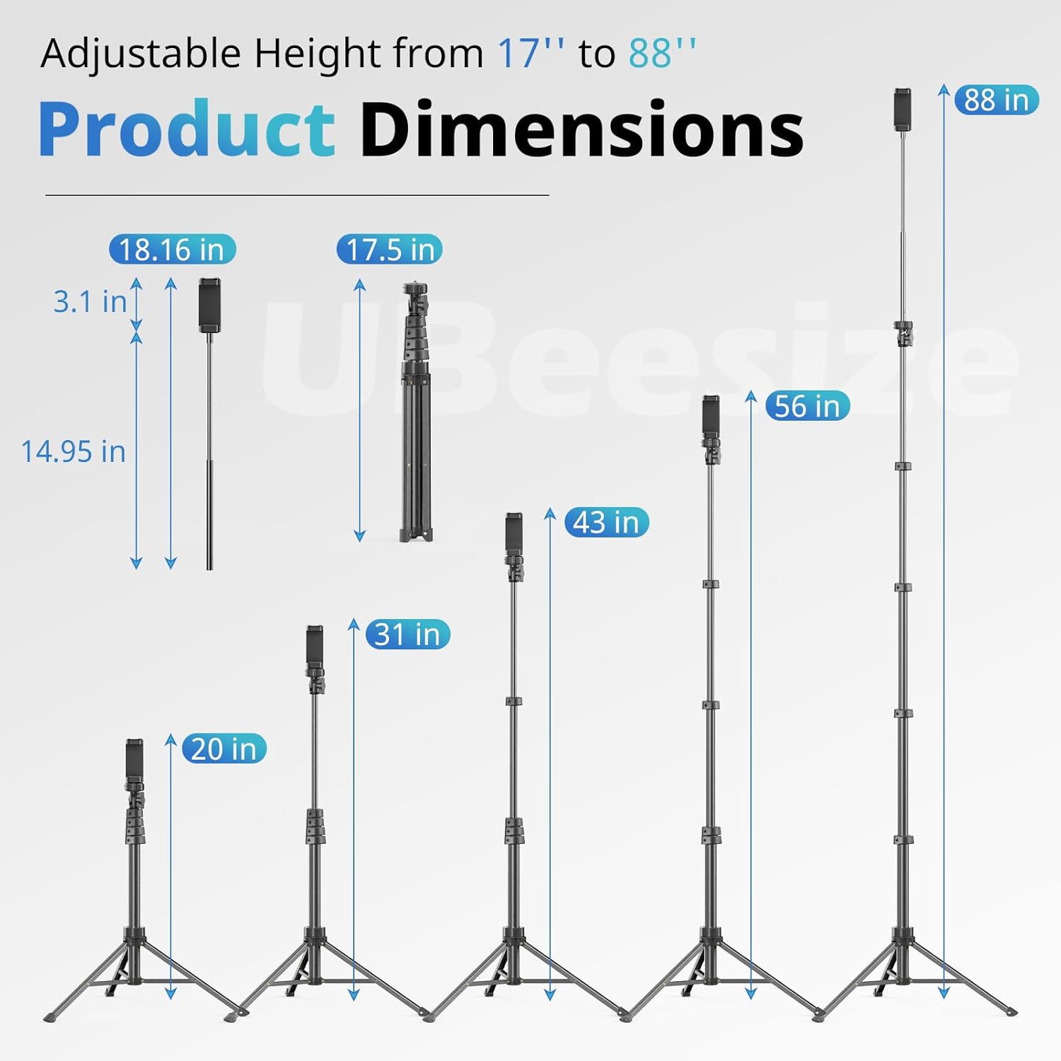 UBeesize 88’’ Flexible Phone Tripod with 14.95’’ Gooseneck, Remote and Phone Holder, Overhead Cell Phone Stand&Selfie Stick for Video Recording, Compatible with iPhone Android Phone, Camera Black