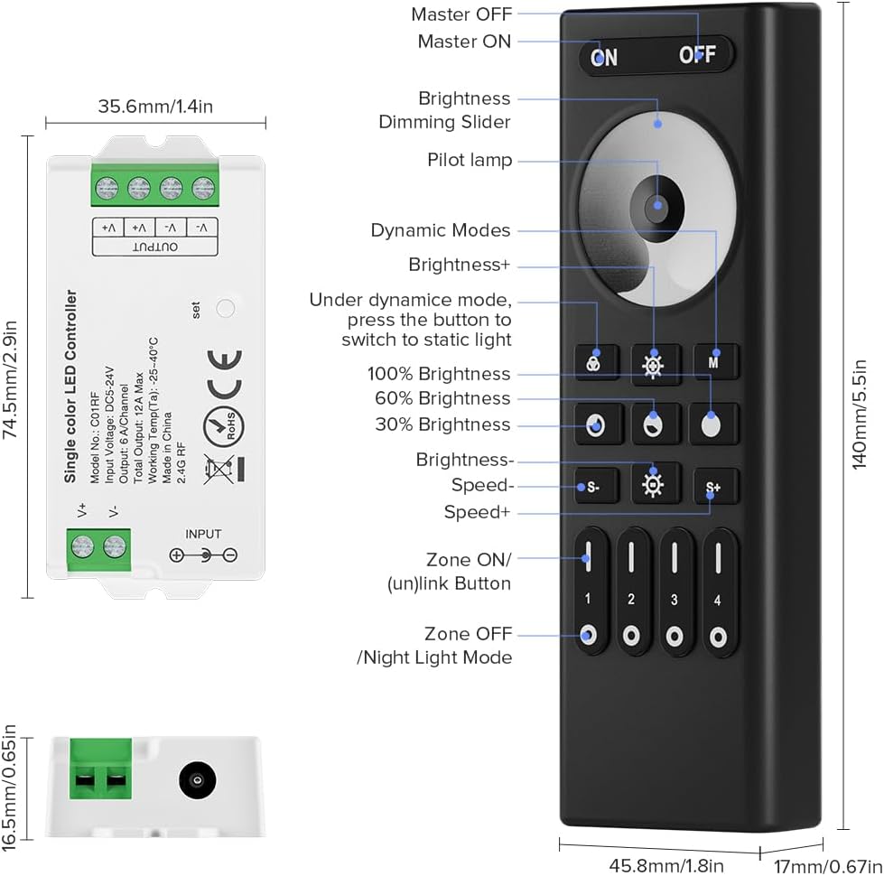 - Special Feature : 2.4GHz RF Wireless, Auto-transmitting function, Group Control, RF Remote, Support PWM Single Color LED Strip 2.4GHz RF Wireless, Auto-transmitting function, Group Control, RF Remote, Support PWM Single Color LED Strip