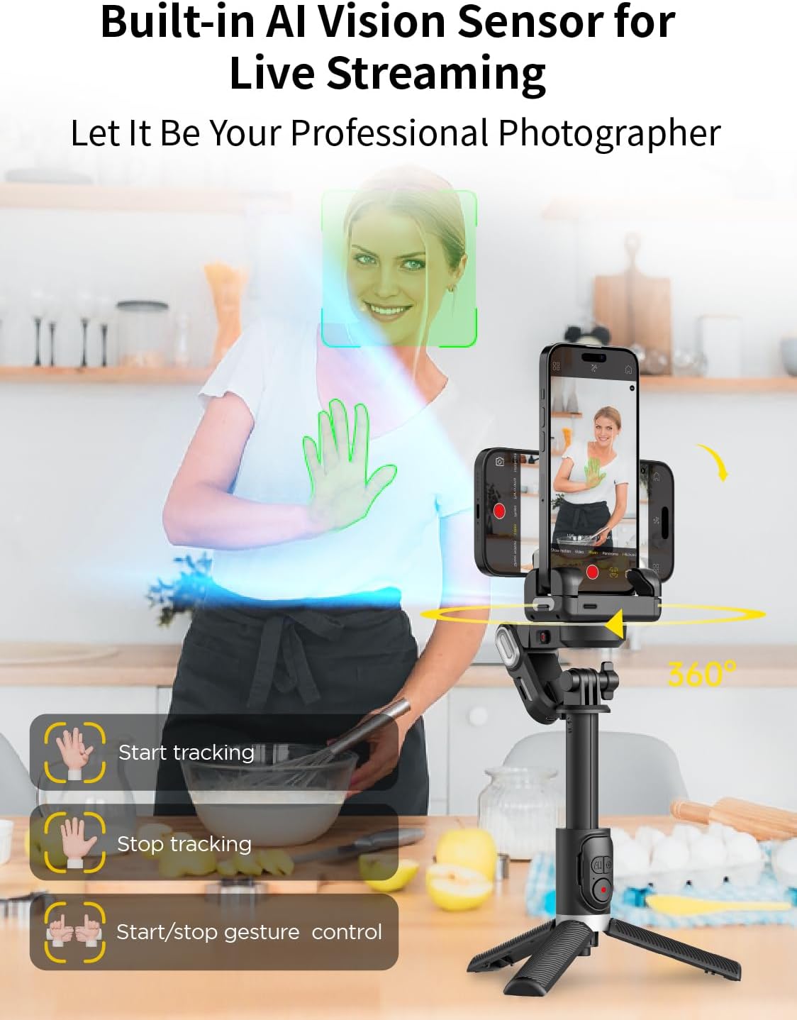 - AI Vision Sensor: M1 Pro phone gimbal has a built-in AI sensor that can automatically identifies and follows your subject, no need to download or install any APP, ensuring they stay perfectly framed and in focus, no matter how they move. Say goodbye to manual adjustments and hello to effortless shooting. Whether you’re shooting videos for TikTok or YouTube, this feature allows you to create engaging content