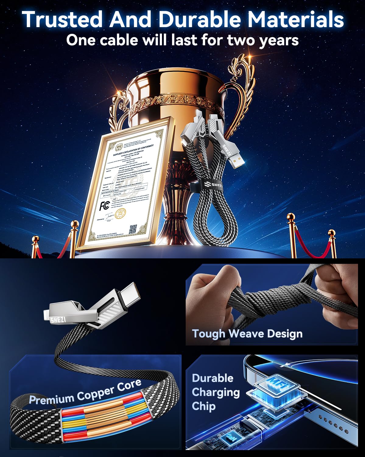 - Easy to store and carry: The 3FT length is perfect for use at home, in the office, in the car, or while traveling. The 4-in-1 USB charging cable is easy to fold and store in your handbag, laptop bag, pocket, and more. Reduce clutter and save space
