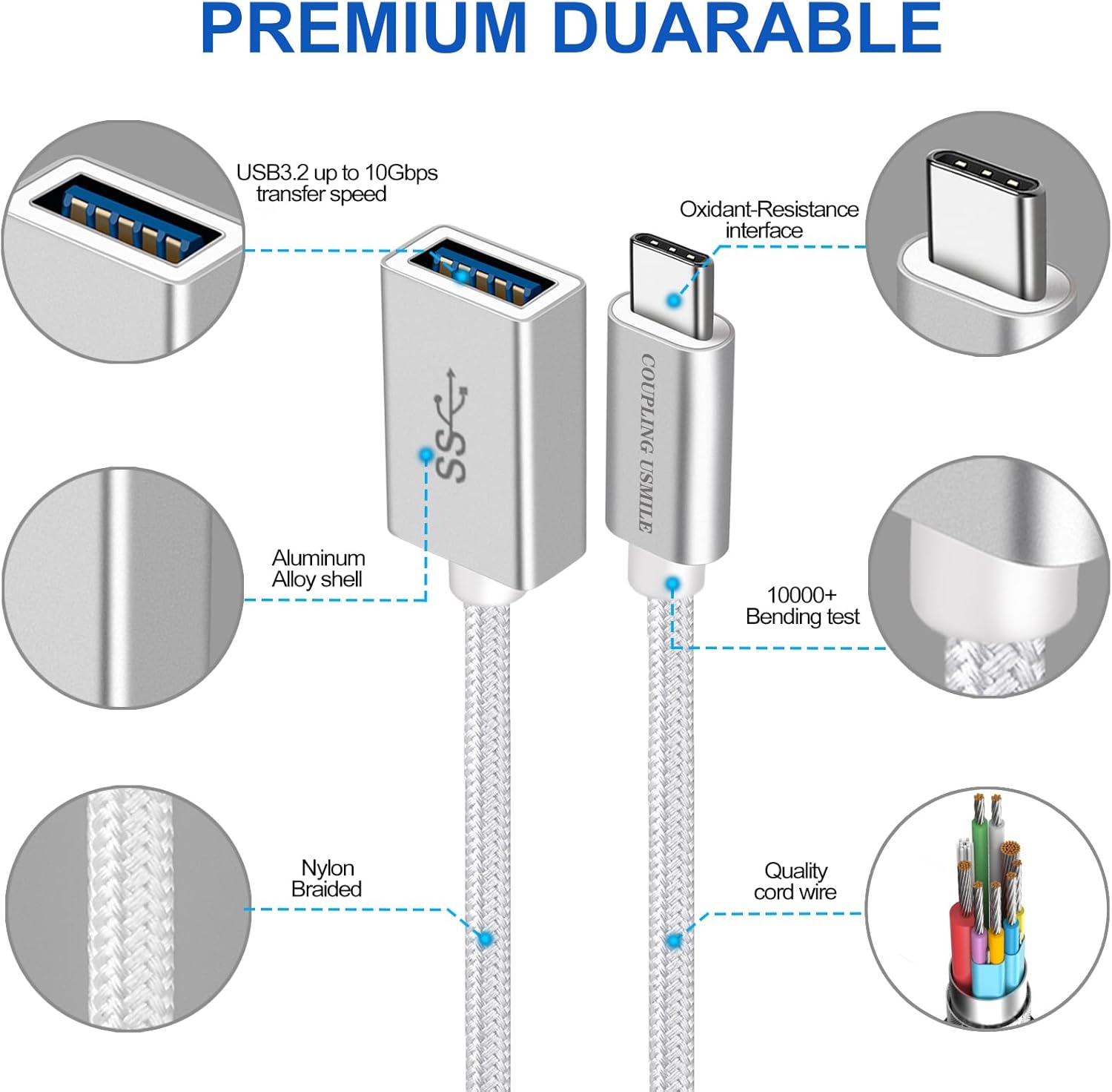 - ăTangle-freeă: USBC to USB adapter tangle-free Premium Nylon Braided Design, is far more dependable than others, Which addits durability and tangle free. Which fits side by side on laptops with two side by side USB c ports, No collide
