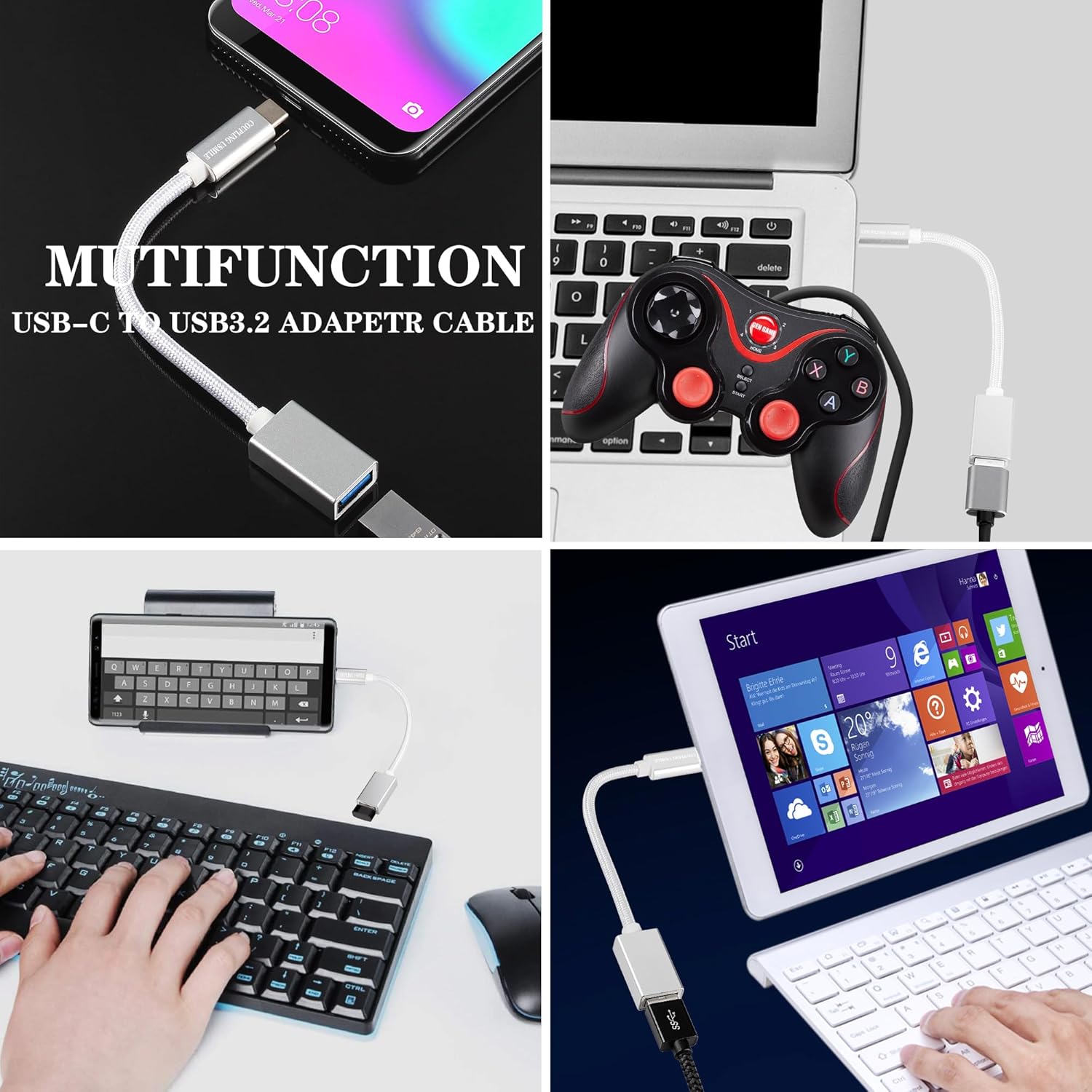 USB C to USB 3.2 Adapter [2pcs Silver], Transfer up to 10Gbps, Type C to USB(Male-Female OTG Cable USBC to USB Adapter Compatible with MacBook Pro/Air, iPhone 15 Pro Max Plus