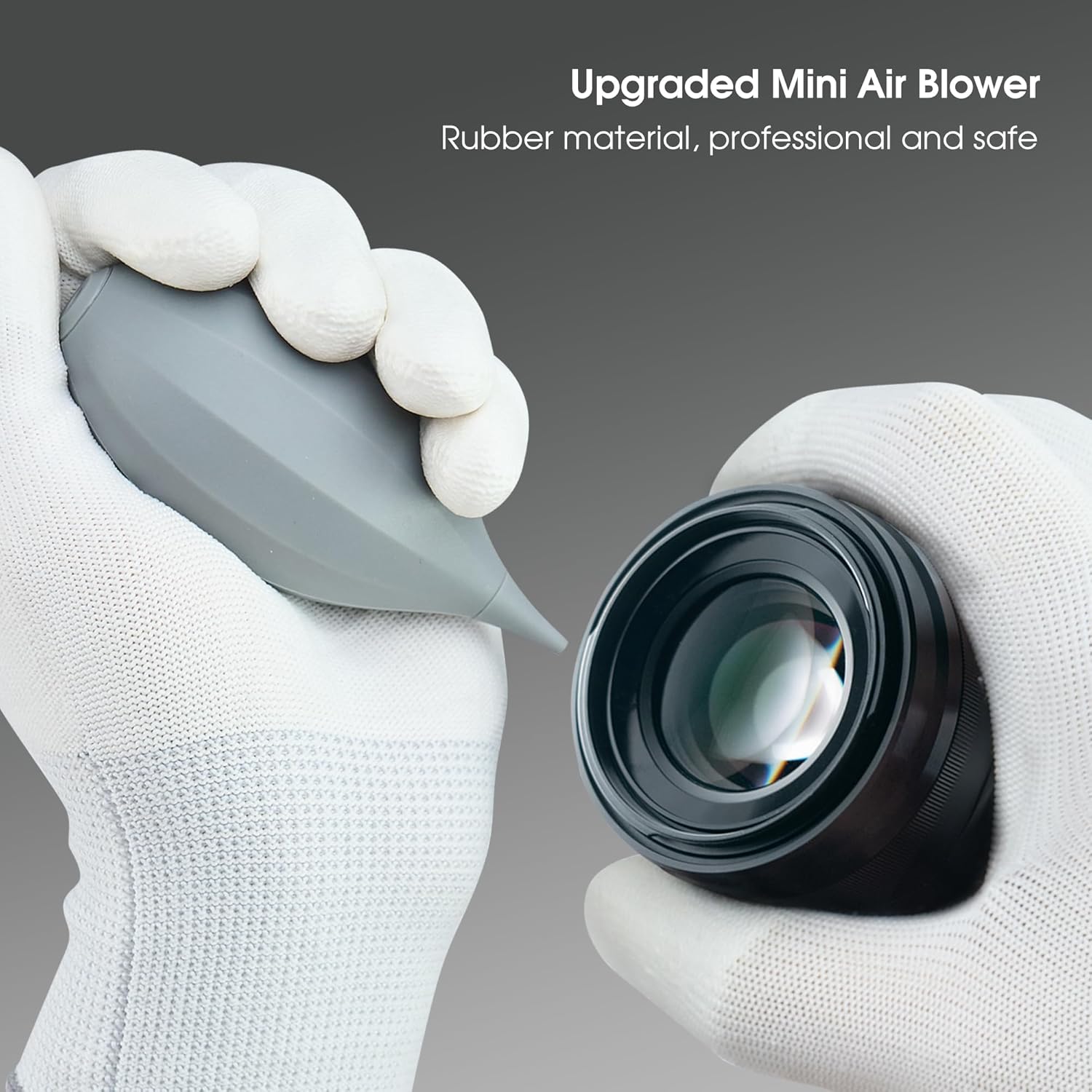 - [Upgraded Mini Air Blower]: The integrated mini air blower comes with compact size, easy to carry in your camera bag. It adopts powerful dust removal without back suction, blows away large surface particles to prevent scratching the lens.