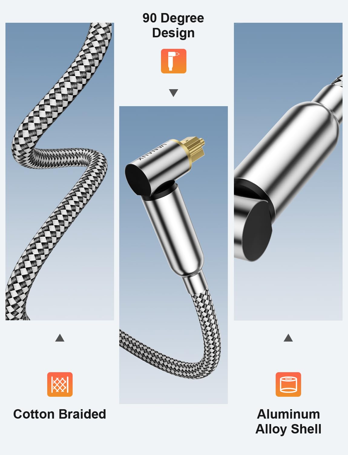 - Premium Audio Quality: Enjoy crystal-clear audio transmission with our 90-degree angled fiber optic audio cable. Perfect for tight spaces, it delivers high fidelity sound without interference.