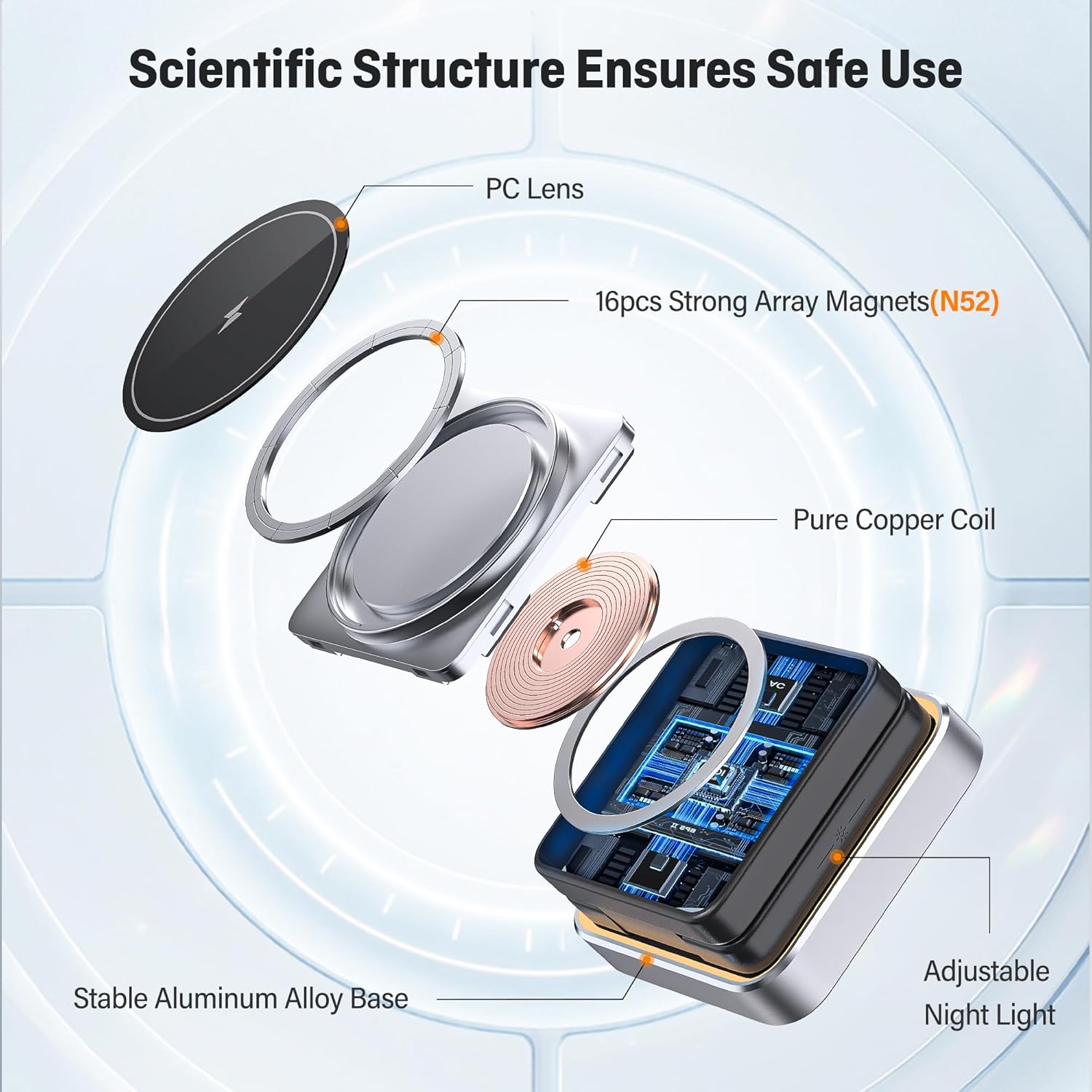 - Portable but Powerful:Among many foldable wireless chargers, our folding structure is more stable and the magnetic attraction is stronger. The metal damping shaft can withstand tens of thousands of tests and still stay at the angle you want. 16pcs of N52 array magnets firmly adsorb the phone to ensure continuous charging and protect the phone