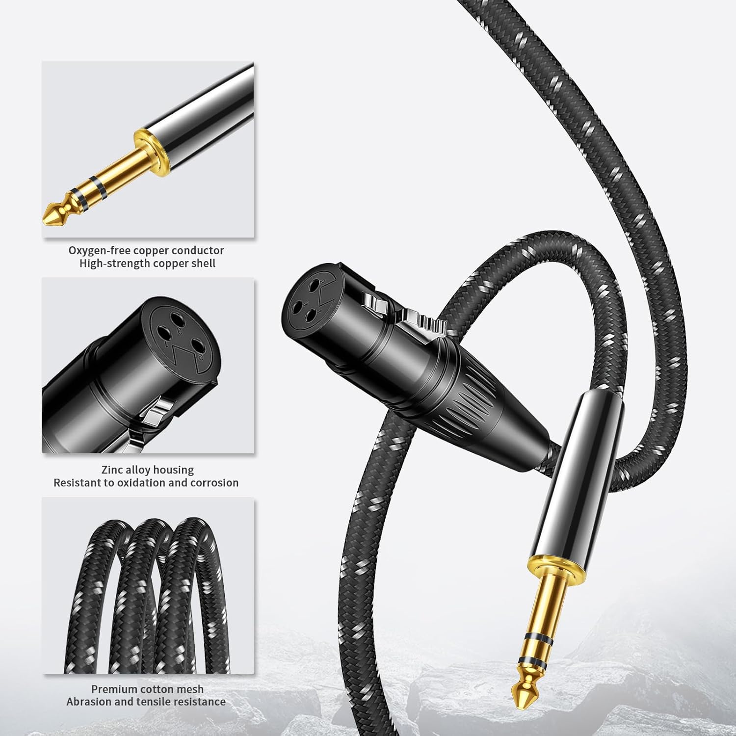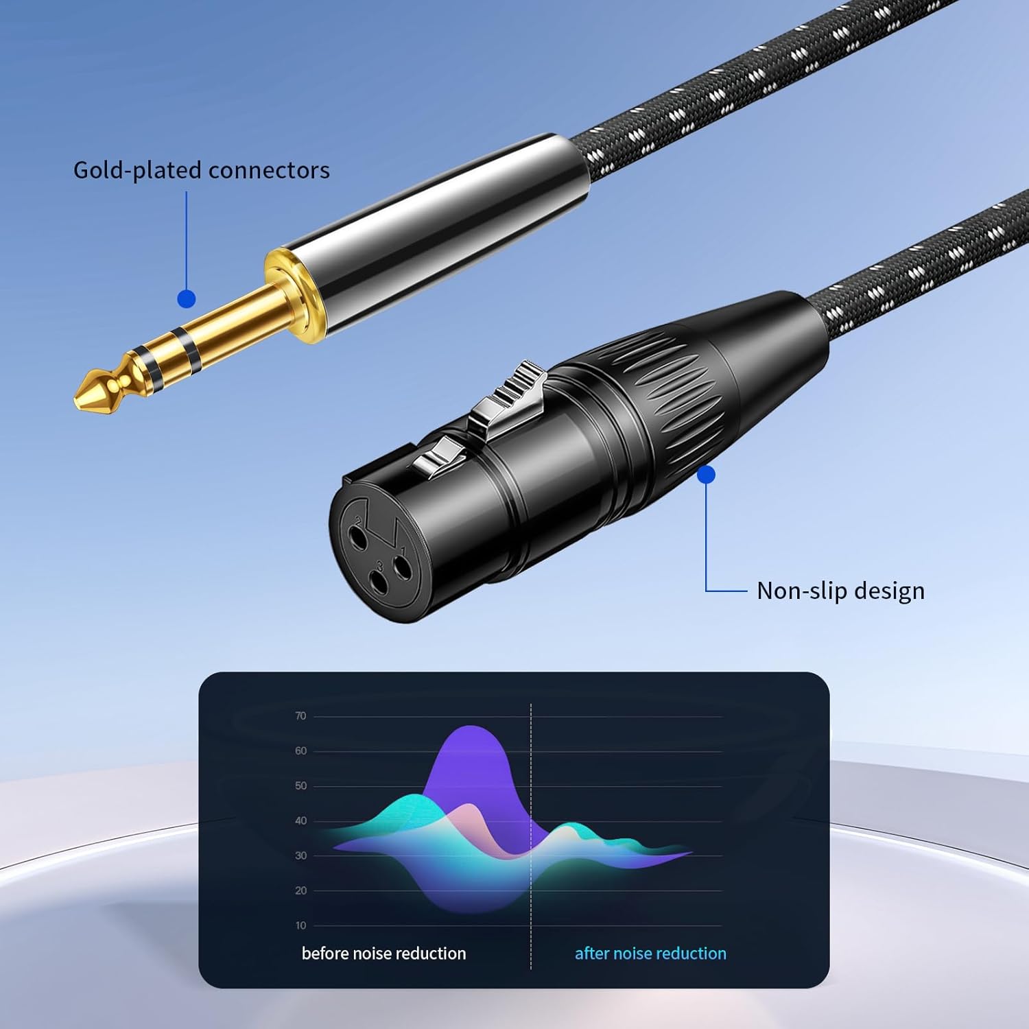 - More Choices:This Female XLR to 1/4 cable has an outside diameter of 6.5mm, and we have lengths from 5 feet to 15 feet for you to choose from, so you can purchase the length that works best for you.