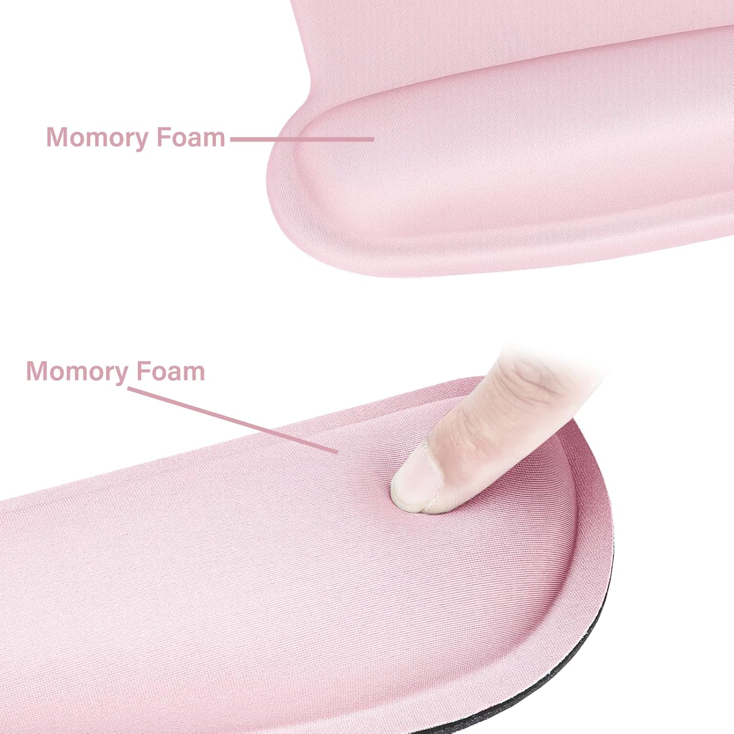 MOSISO Wrist Rest Support for Mouse Pad & Keyboard Set, Ergonomic Mousepad Non-Slip Base Home/Office Pain Relief & Easy Typing Cushion with Neoprene Cloth & Raised Memory Foam, Rose Pink