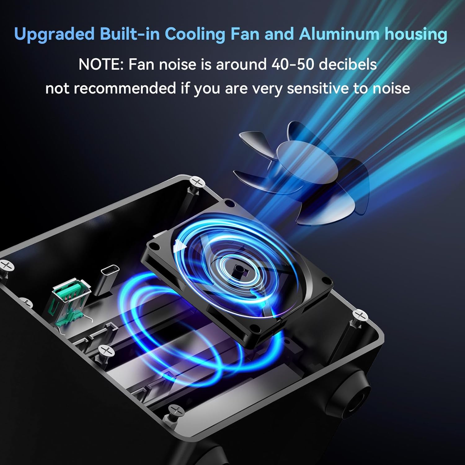 - 【No heat】The 2 bay hard drive enclosure built in Aluminum-Alloy materials and 2.7 inch Fan.Maximize the security of your data. NOTE:Fan noise is around 40-50 decibels, not recommended if you are very sensitive to noise.