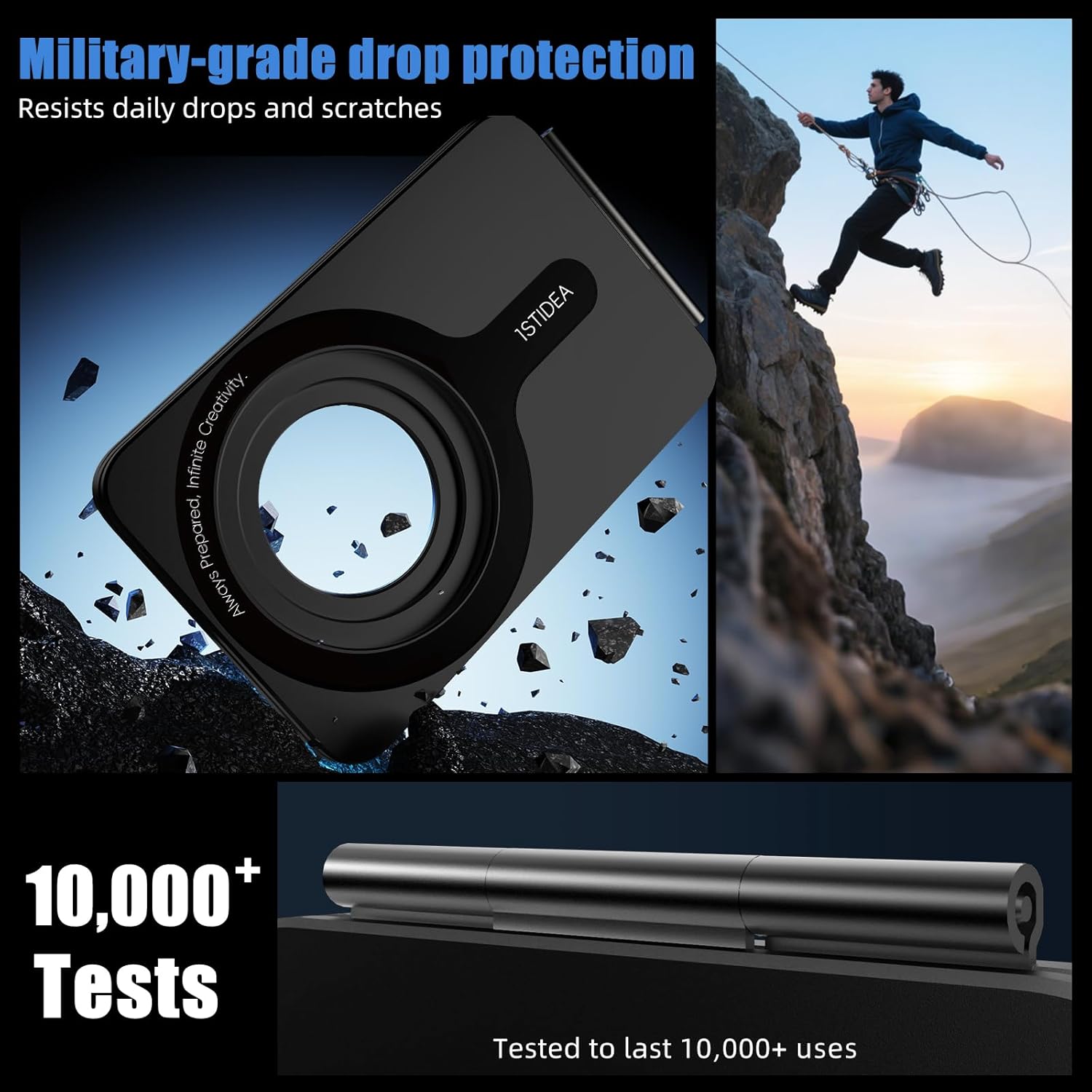 - Compatibility: 1ST IDEA phone tripod stand compatible with iPhone 16 Pro Max, iPhone16 Pro, iPhone 16 Plus, iPhone 16, iPhone 15 Pro Max, iPhone15 Pro, iPhone 15 Plus, iPhone 15, iPhone 14 Pro Max, iPhone14 Pro, iPhone 14 Plus, iPhone 14, iPhone 13 Pro Max, iPhone 13 Pro, iPhone 13, iPhone 13 Mini, iPhone 12 Pro Max, iPhone 12 Pro, iPhone 12, iPhone 12 Mini, and compatible with MagSafe cases. Tripod iphone for non-MagSafe phones or cases with an included Metal Ring Inside the package