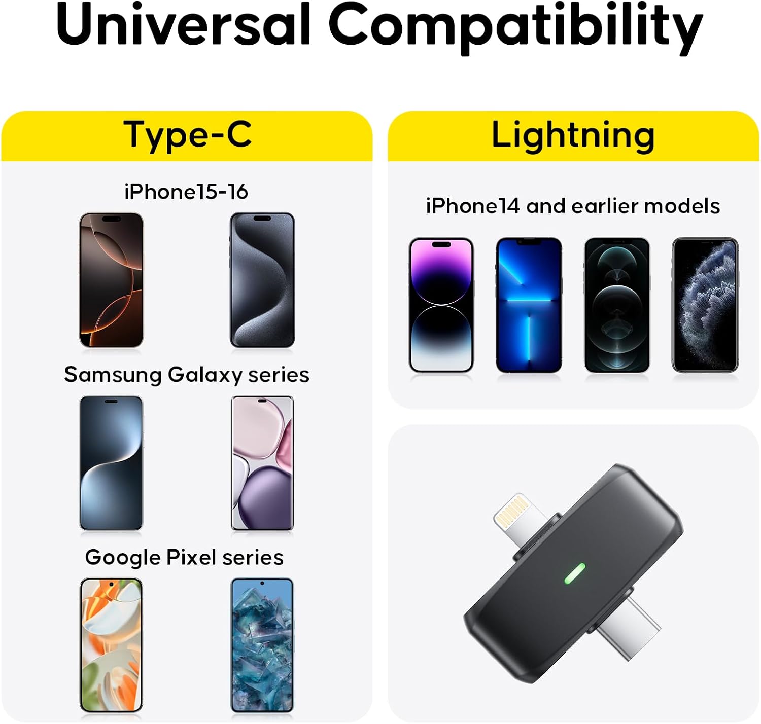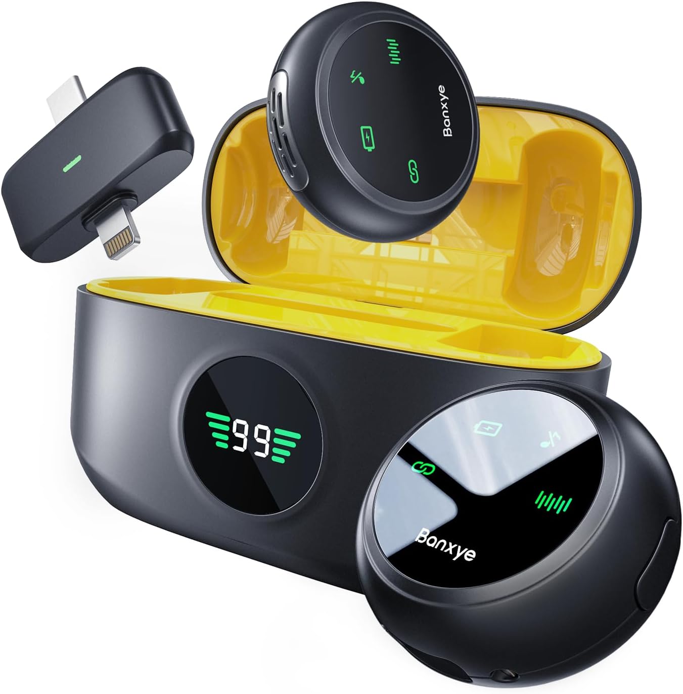 - 【Unmatched Support】 Compatible with Lightning and Type-C connectors. Used for iPhone 16/15/14/13/12/11, Sansung series and Google series phone on Youtube, Tiktok, Vlog and so on. Enjoy 1-second quick pairing and reduce hassle. We stand by our product with a lifetime warranty. For any questions, follow these steps: Visit Your Account→Your Orders→Select the product detail page→Click on "Banxye Store"→Choose "Ask a Question" for prompt assistance.
