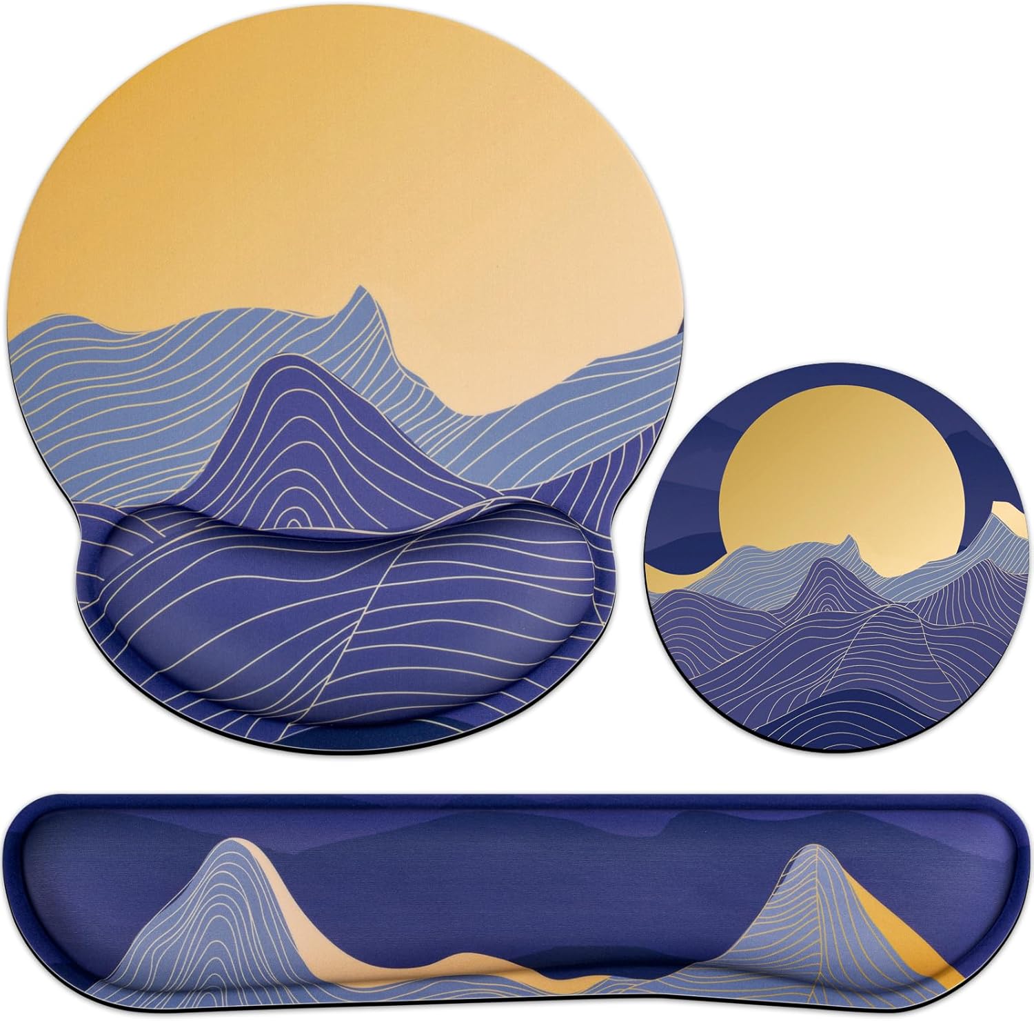 - 【3-IN-1 Keyboard Wrist Rest】-The size of the mouse pad with wrist guard is 10x9 in, the size of the keyboard wrist rest cute guard is 17.2x3.3 in,and the diameter of the cup pad is 3.9 in.The Mousepad with wrist support can be used with notebook computers,desktop computers and game consoles,and is suitable for office,home,dormitory or other occasions.