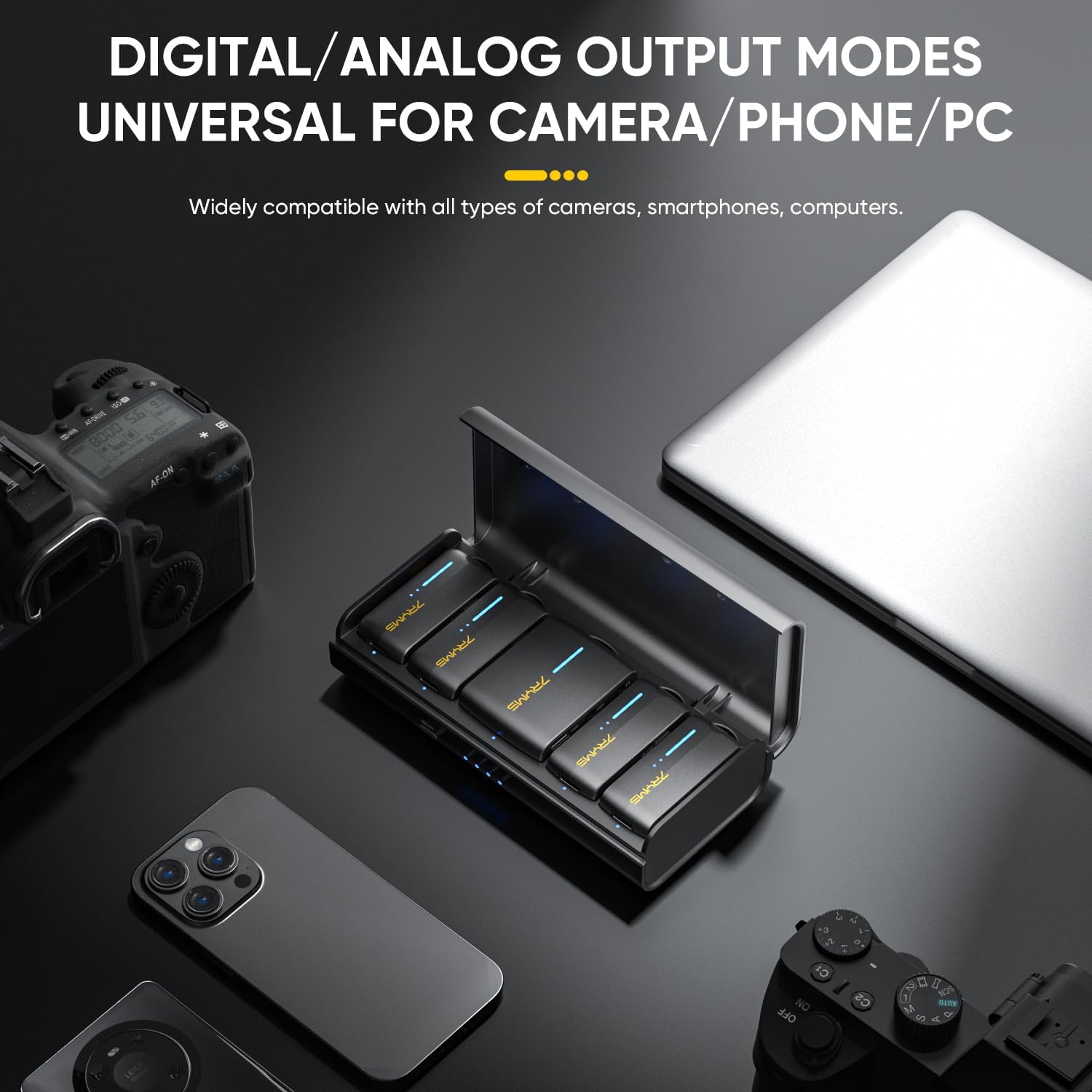 - Included Components : 2-in-1 Charging/Audio Output Cable*1, 3.5mm TRS-TRS Audio Cable*1;3.5mm TRS-TRRS Audio Cable*1, Charging Case*1; Carrying Pouch*1, Transmitter(TX) *4; Receiver(RX)*1, Wind Muff*4; Magnetic Plate *4 2-in-1 Charging/Audio Output Cable*1, 3.5mm TRS-TRS Audio Cable*1;3.5mm TRS-TRRS Audio Cable*1, Charging Case*1; Carrying Pouch*1, Transmitter(TX) *4; Receiver(RX)β¦ See more