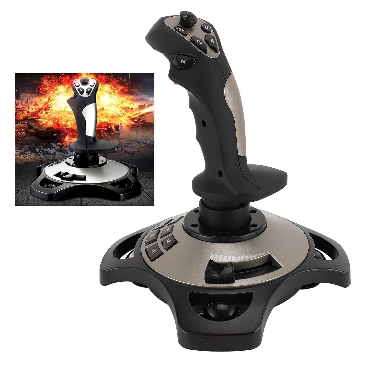 - FUNCTIONAL CONFIGURATION: computer flight joystick has four axes (X Y RZ axis), acceleration valve, 12 programmable buttons and eight way cover, integrated vibration motors, these functional configurations allow you to enjoy the fun of the game.