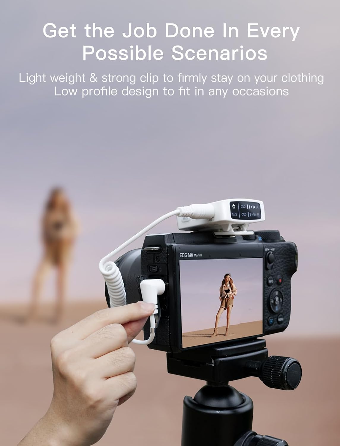 - [Sleek Portability, Effortless Recording] The wireless lapel microphone set is a stylish addition to your pocket or handbag, ready to capture at a moment's notice. Clip the camera mic set onto your shirt and start recording instantly, without the hassle of bulky equipment. Ideal for agile videographers at events, wireless lav mic allows you to move freely to record.