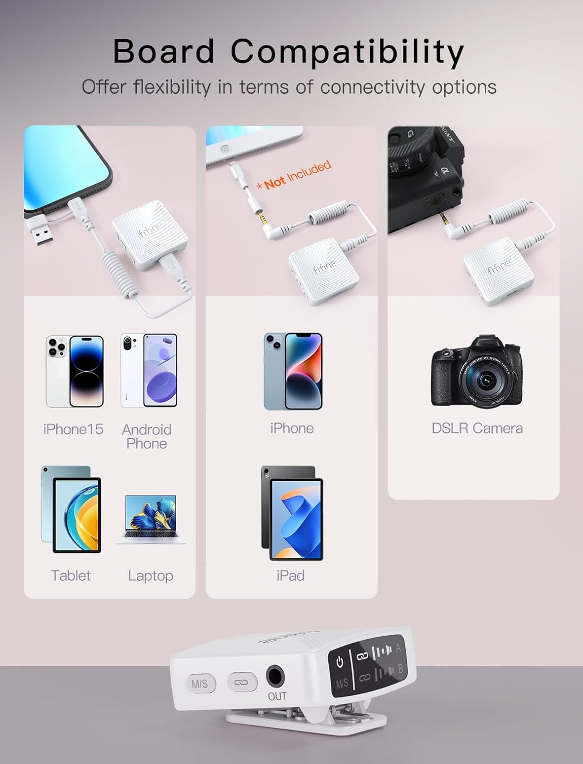 - [Versatile Compatibility, One-Stop Solution] Whether you're shooting on a DSLR, vlogging on a Type-C smartphone, or online course recording on a laptop, the wireless lapel mic for podcast is convenient to connect to Android phones, tablets, iPhones, iPads, and laptops. Clip microphone wireless is ideal choice for creators who switch between platforms or need flexibility in different recording environments.