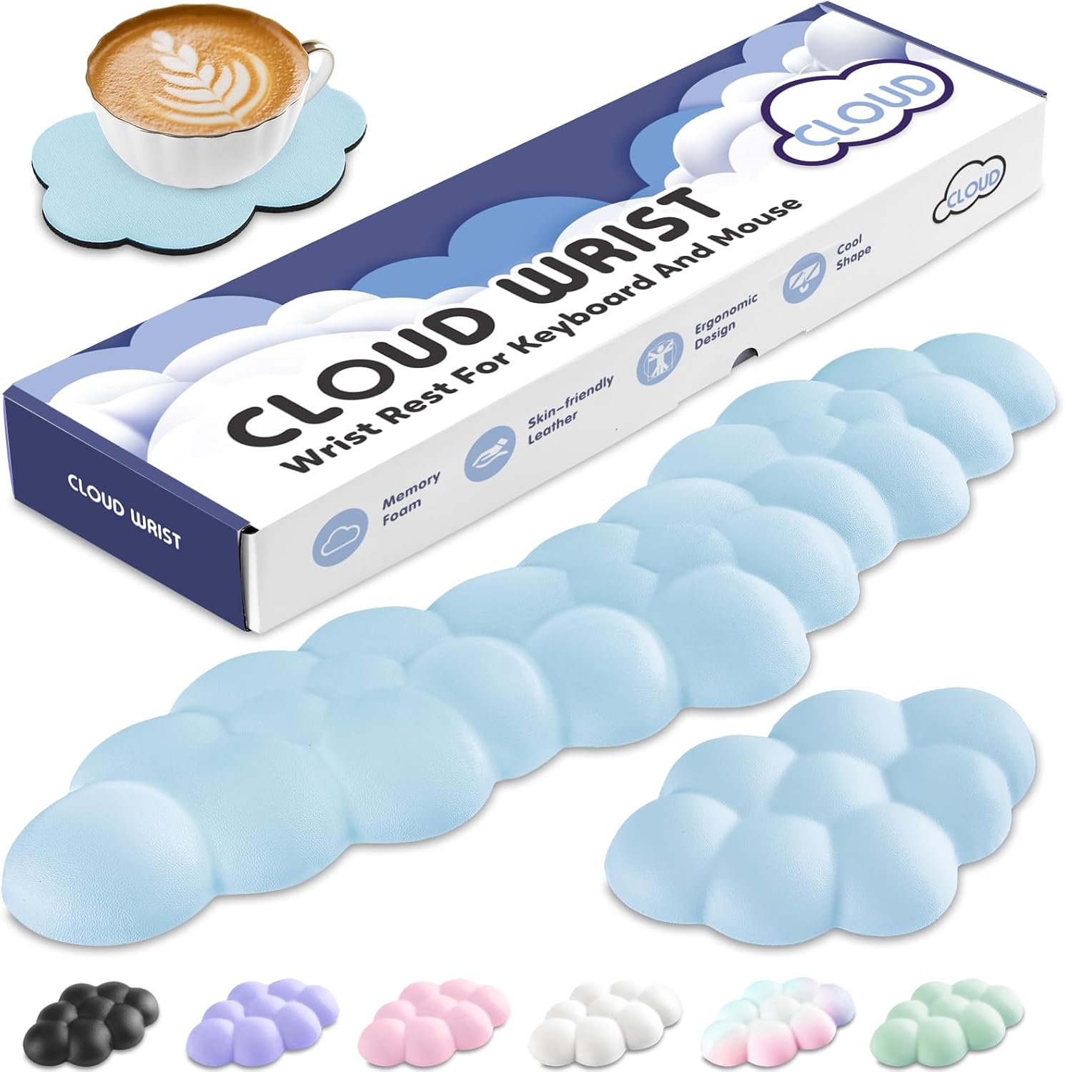 - 3-in-1 Cloud Desk Set:This 3-piece cute desk accessory set includes a keyboard wrist rest, a matching mouse wrist rest, and a cloud-shaped coaster. Designed for both function and aesthetics, it's a thoughtful office gift for family, friends and teachers, or coworkers who want to add comfort and style to their workspace