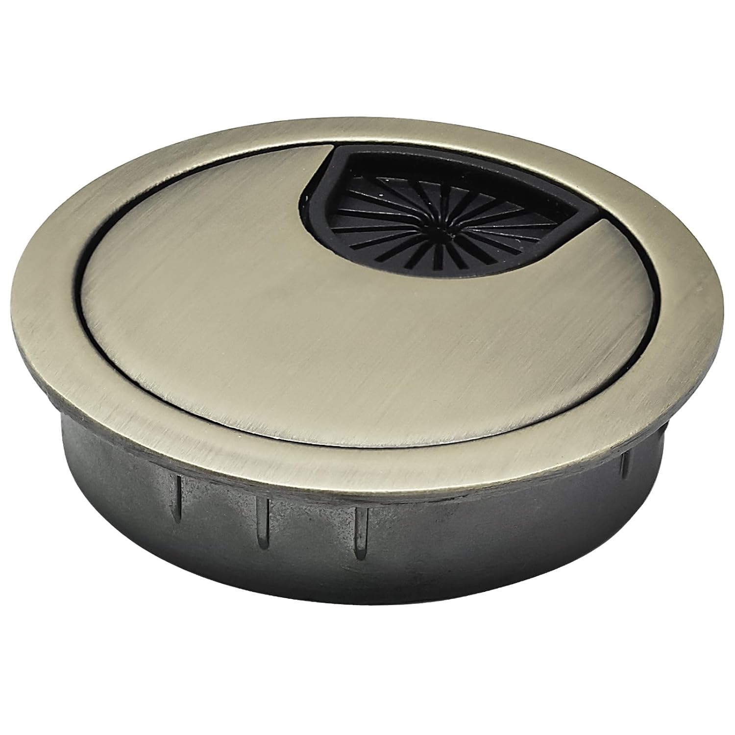 - HIGH QUALITY MATERIAL: The desk cord hole cover is made of tough zinc alloy and soft rubber material, electroplating treatment makes its appearance more beautiful; It has high impact strength, durability, stability, heat resistance, abrasion resistance and good performance for long-term use