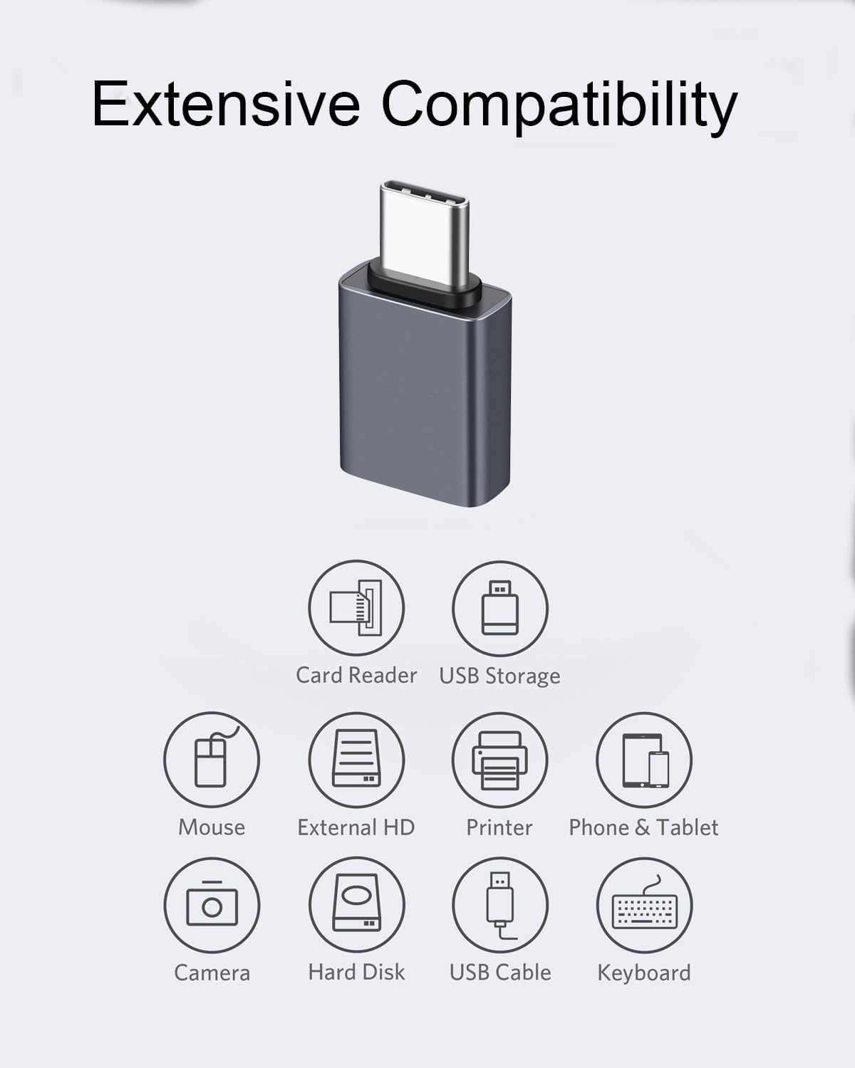 - Widely Compatible: Transform any USB-C port into a USB-A port and connect up a wide range of USB-A devices including external hard drives, phones, mice, printers, Type C laptops, tablets, OTG phones including Samsung Galaxy S24,S23,S22,S21,S20, MacBook Pro after 2016, MacBook Air after 2018, iPad Pro and can be used with 2 mm thick phone cases and more.
