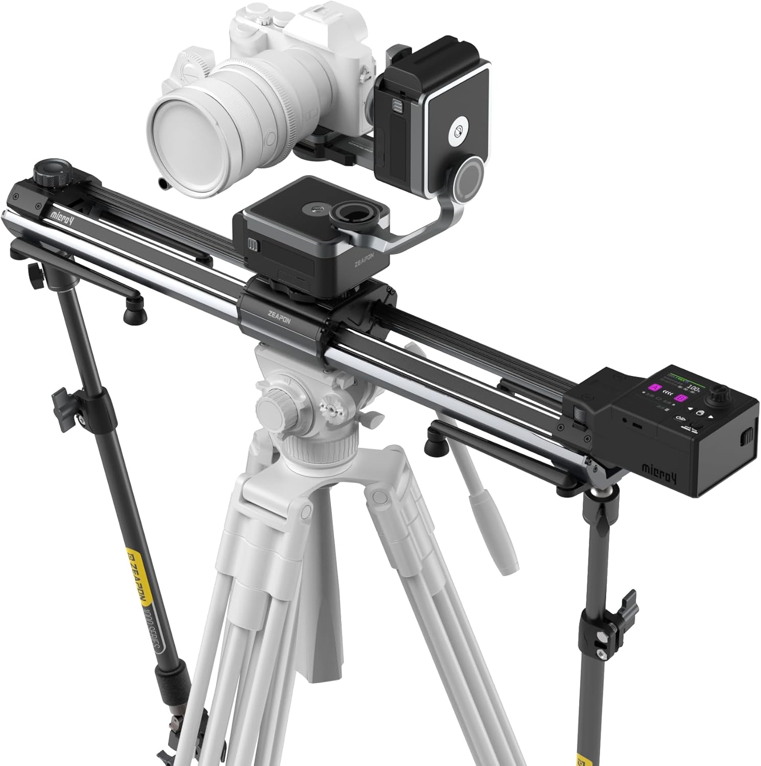 Zeapon Micro4 E1000&PONS PT Heads Double Distance Motorized Camera Slider, High-Speed Low Noise Motor 10-26Lbs Payload, 42''/107cm, LCD Screen, App Control, Smooth Damping Design